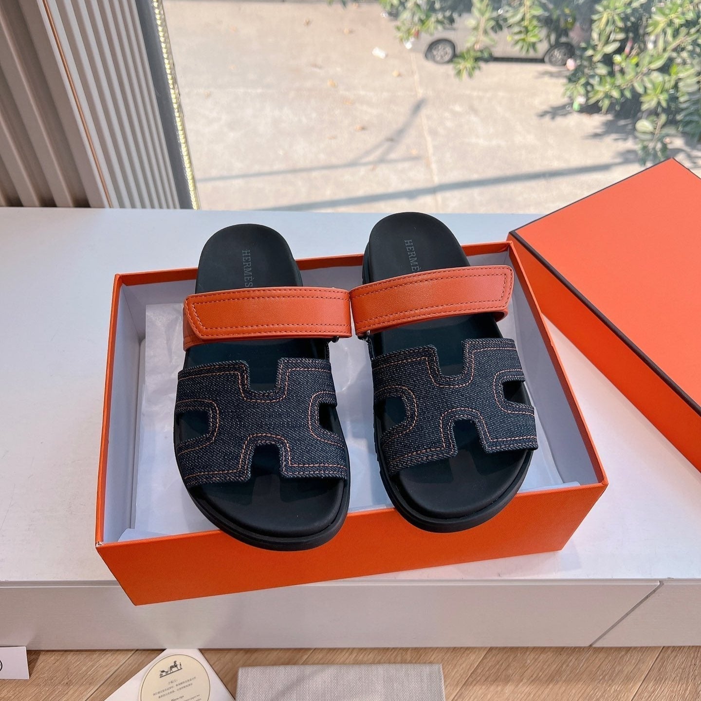 HM Chypre Sandal Bleu Brut Denim and Calfskin 202806