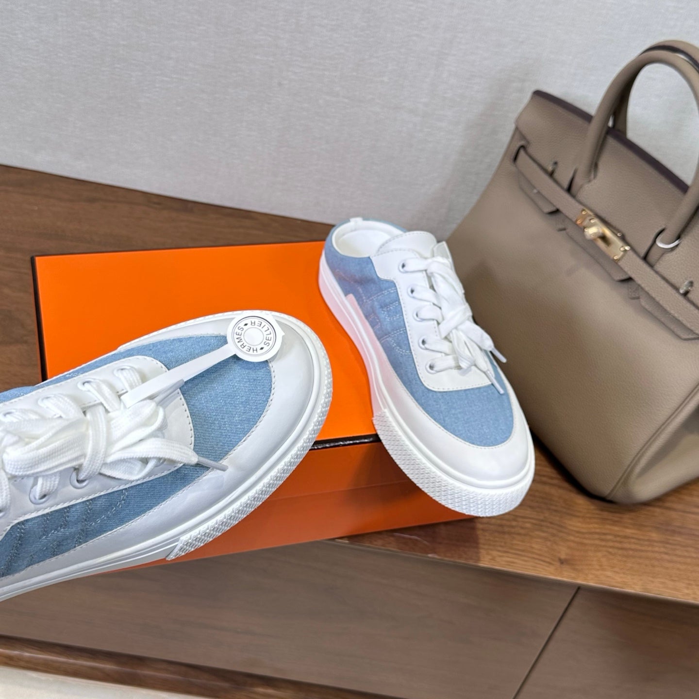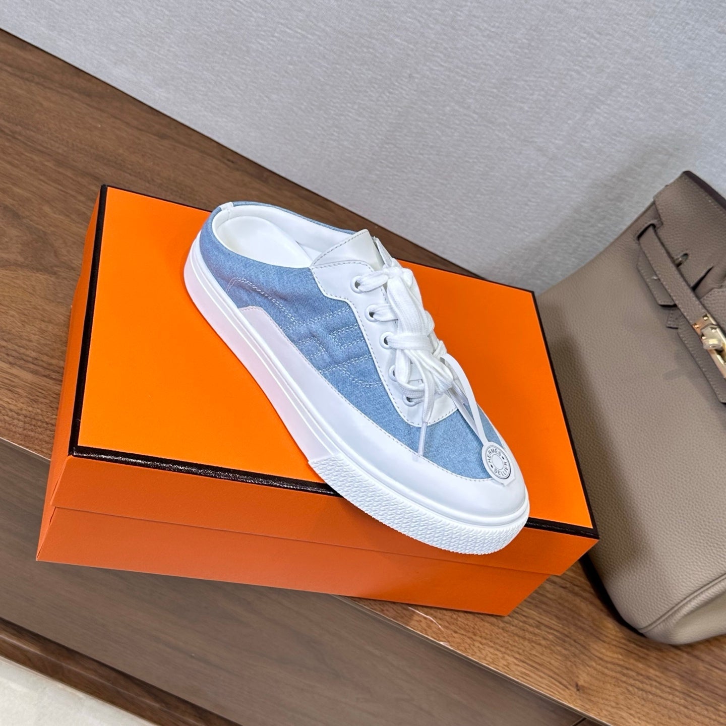 HM Deep Sneaker White Blue Cowhide Fabric 543802