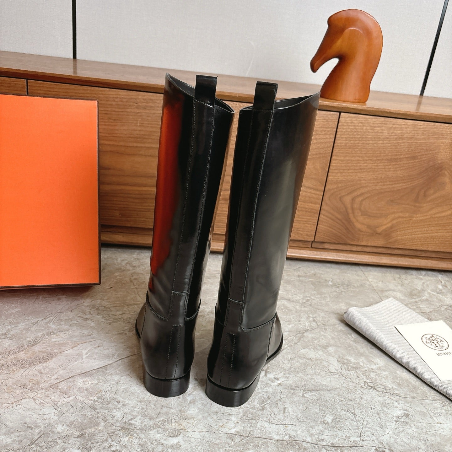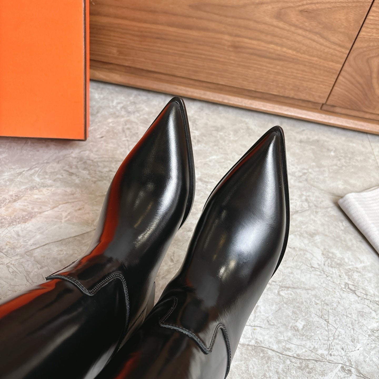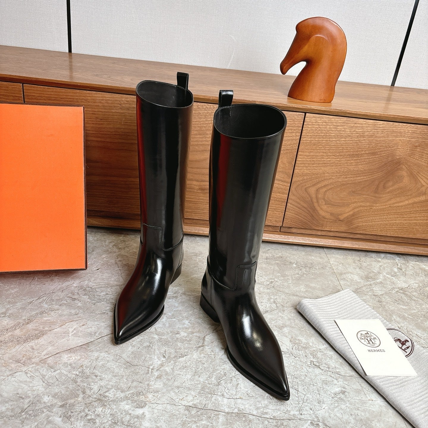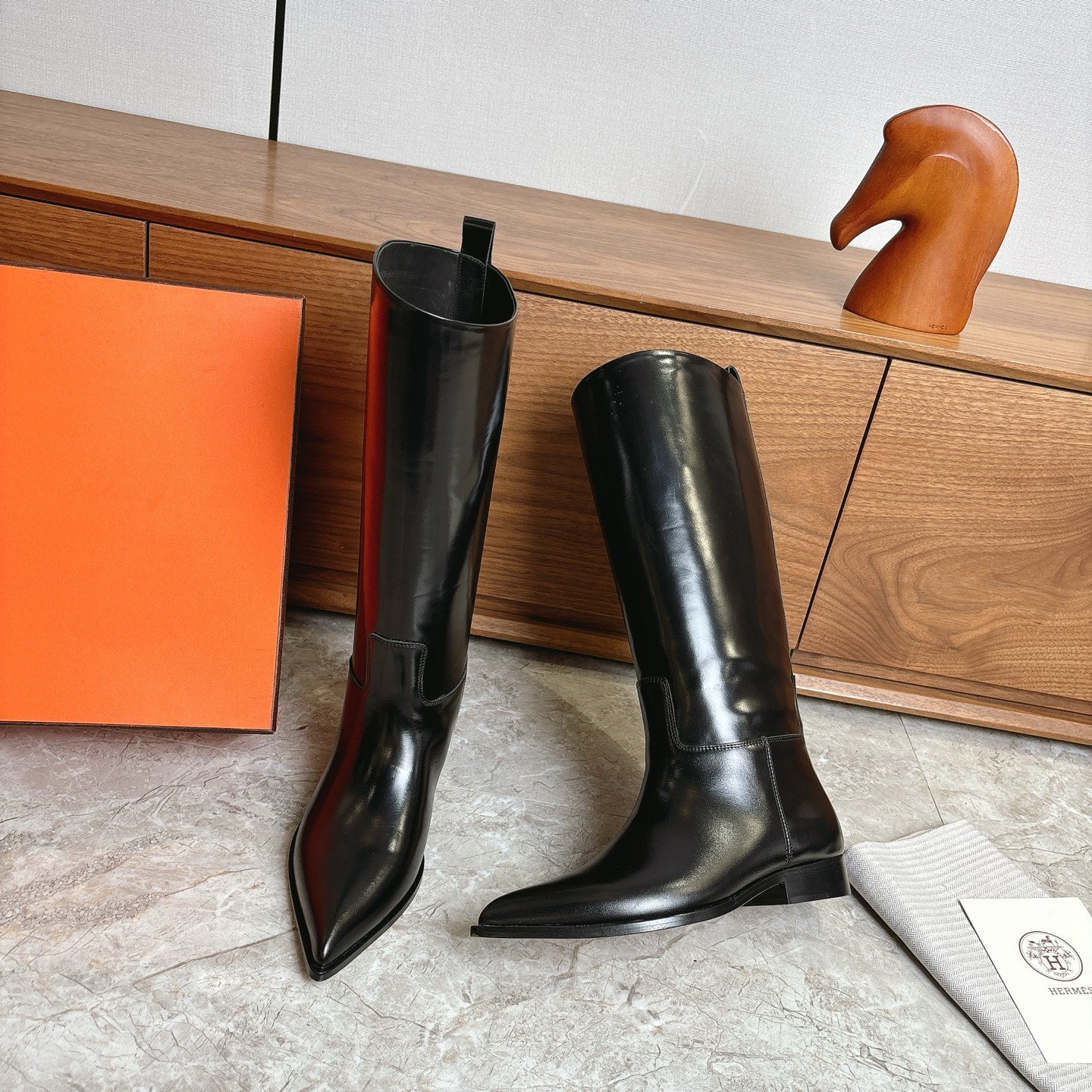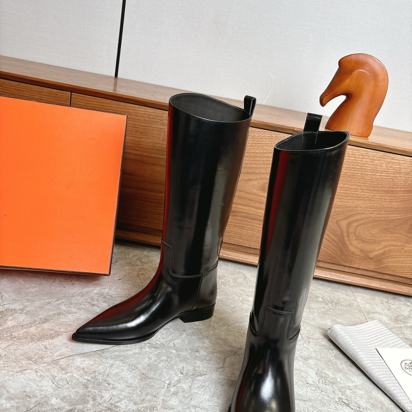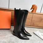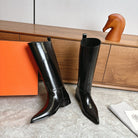 HM FW Pointed-Toe Riding Boots Black Patent Leather 541261