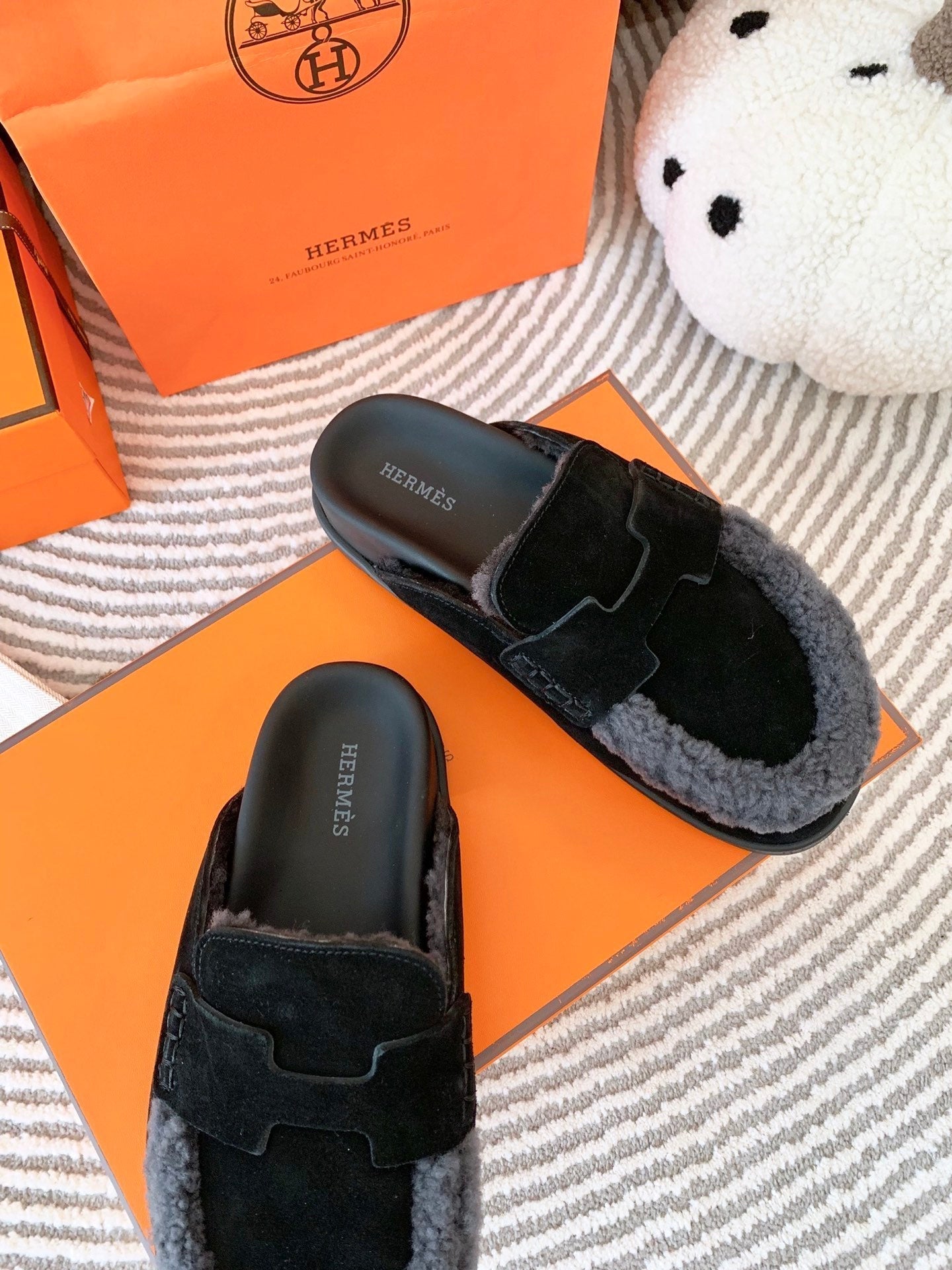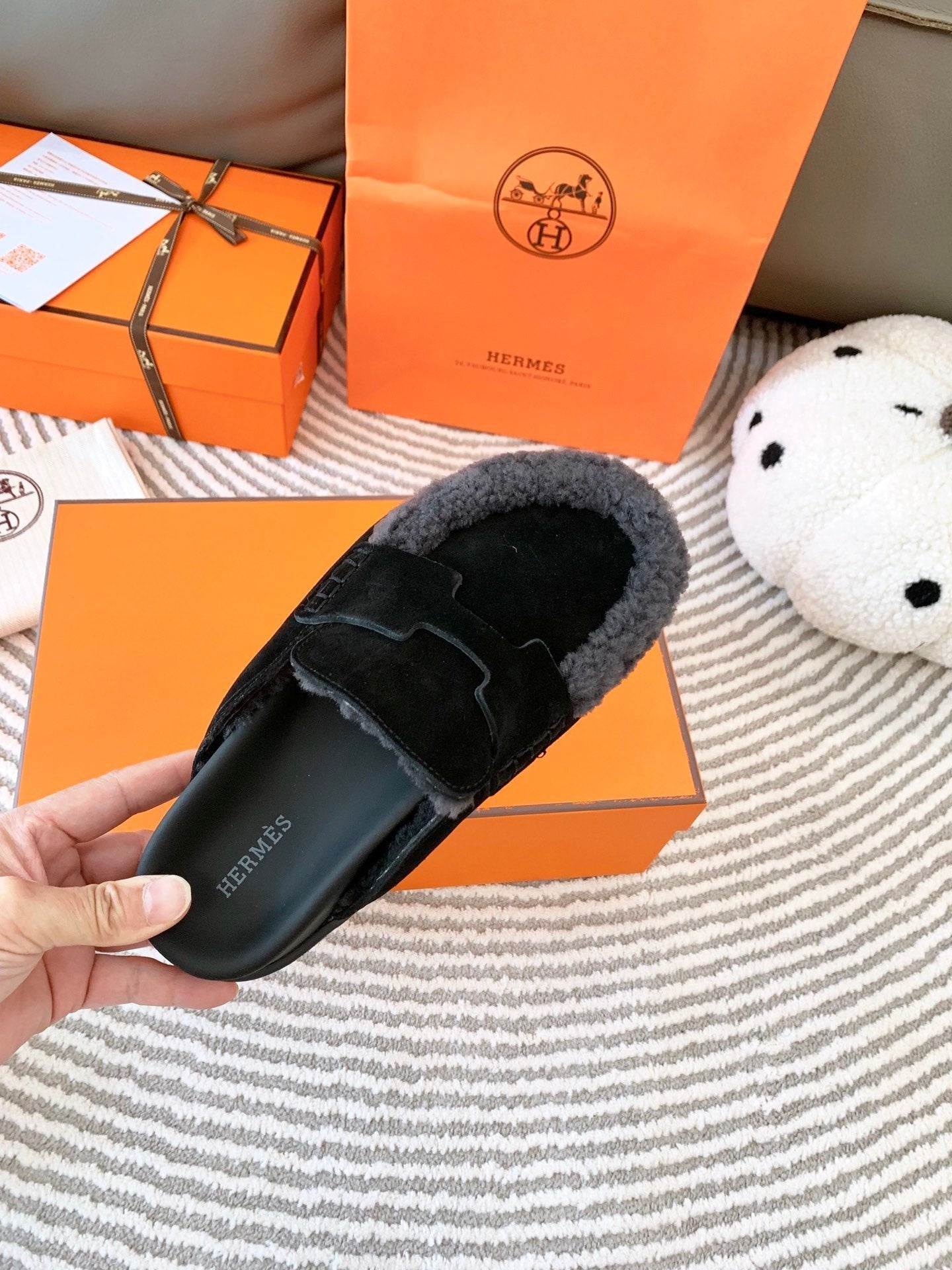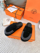 HM Go Mule Black Mix Grey Black Suede Lined With Wool Fleece 963221