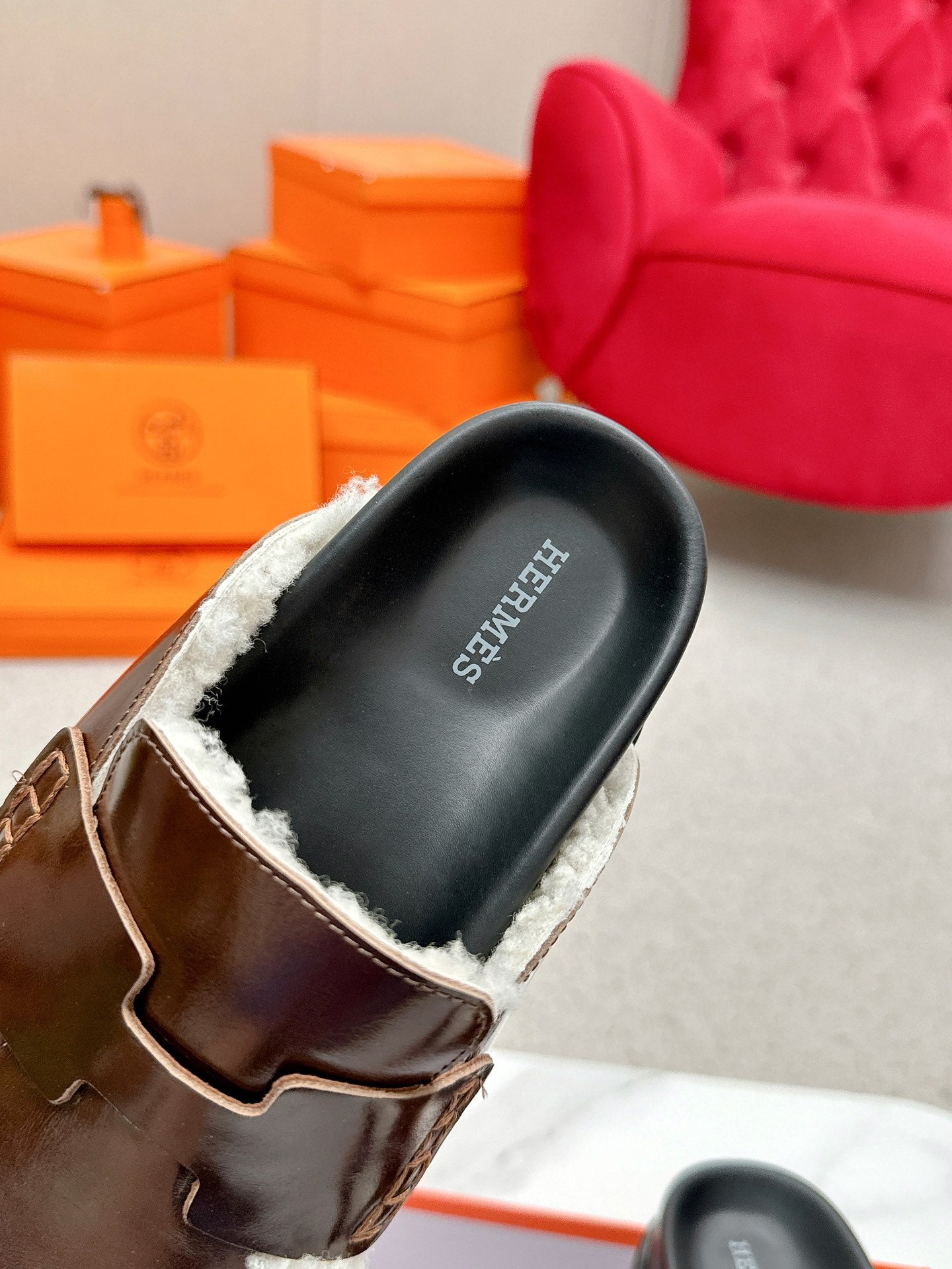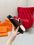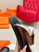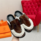 HM Go Mule Brown White Cowhide Lined With Wool Fleece 476588