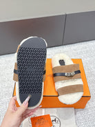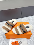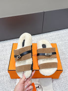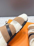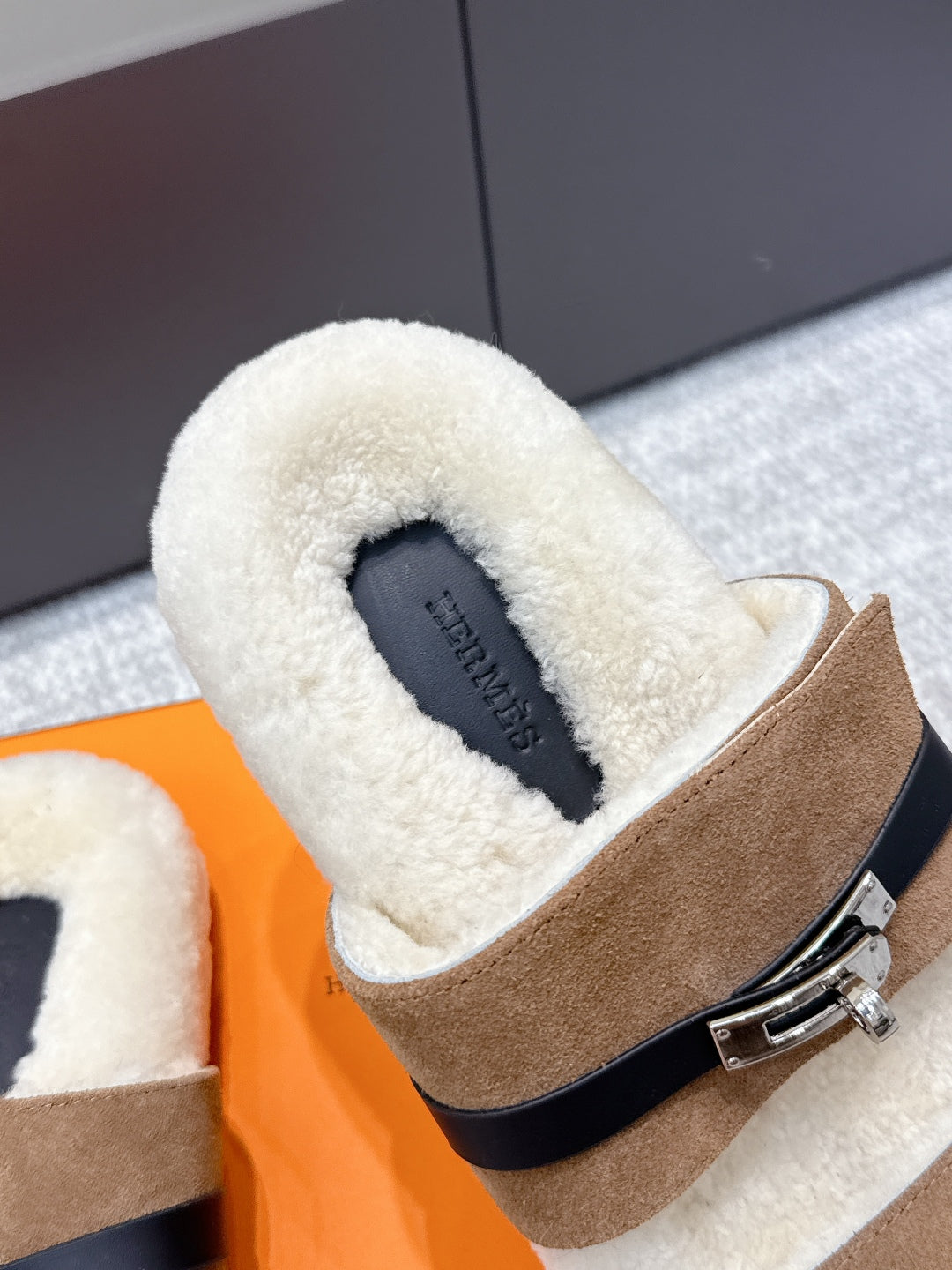 HM Kelly slippers Brown Cowhide Suede Fur 462203