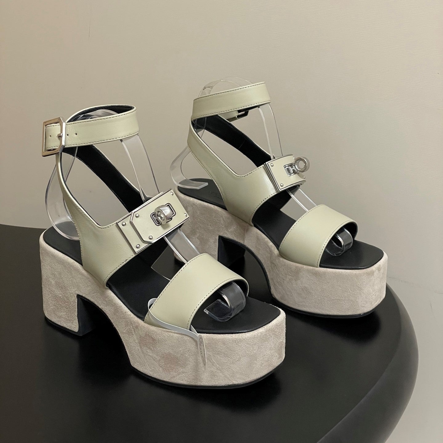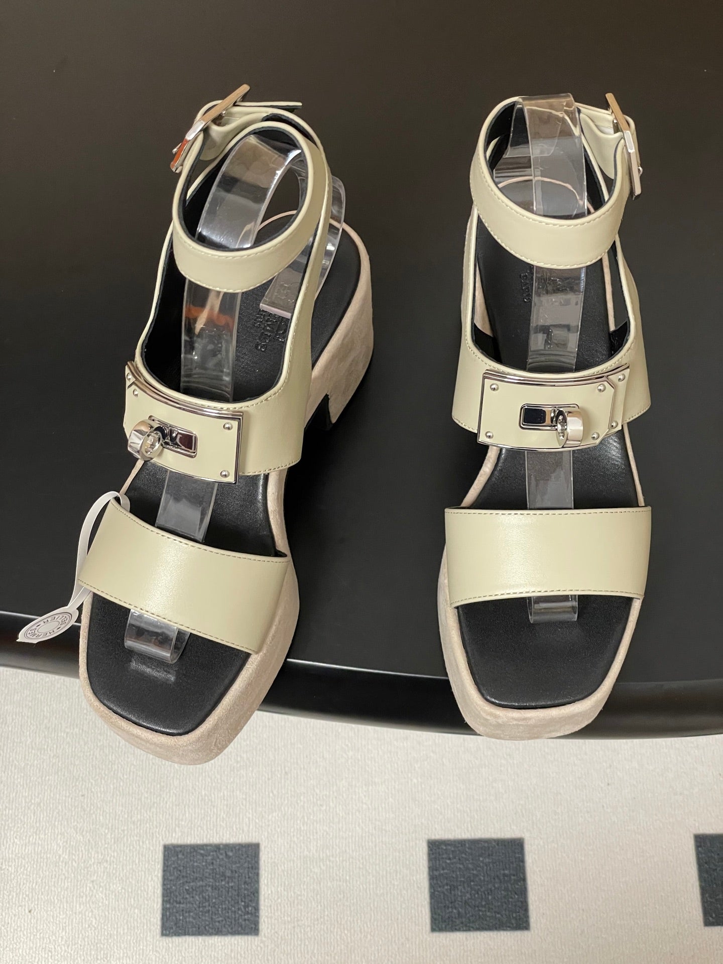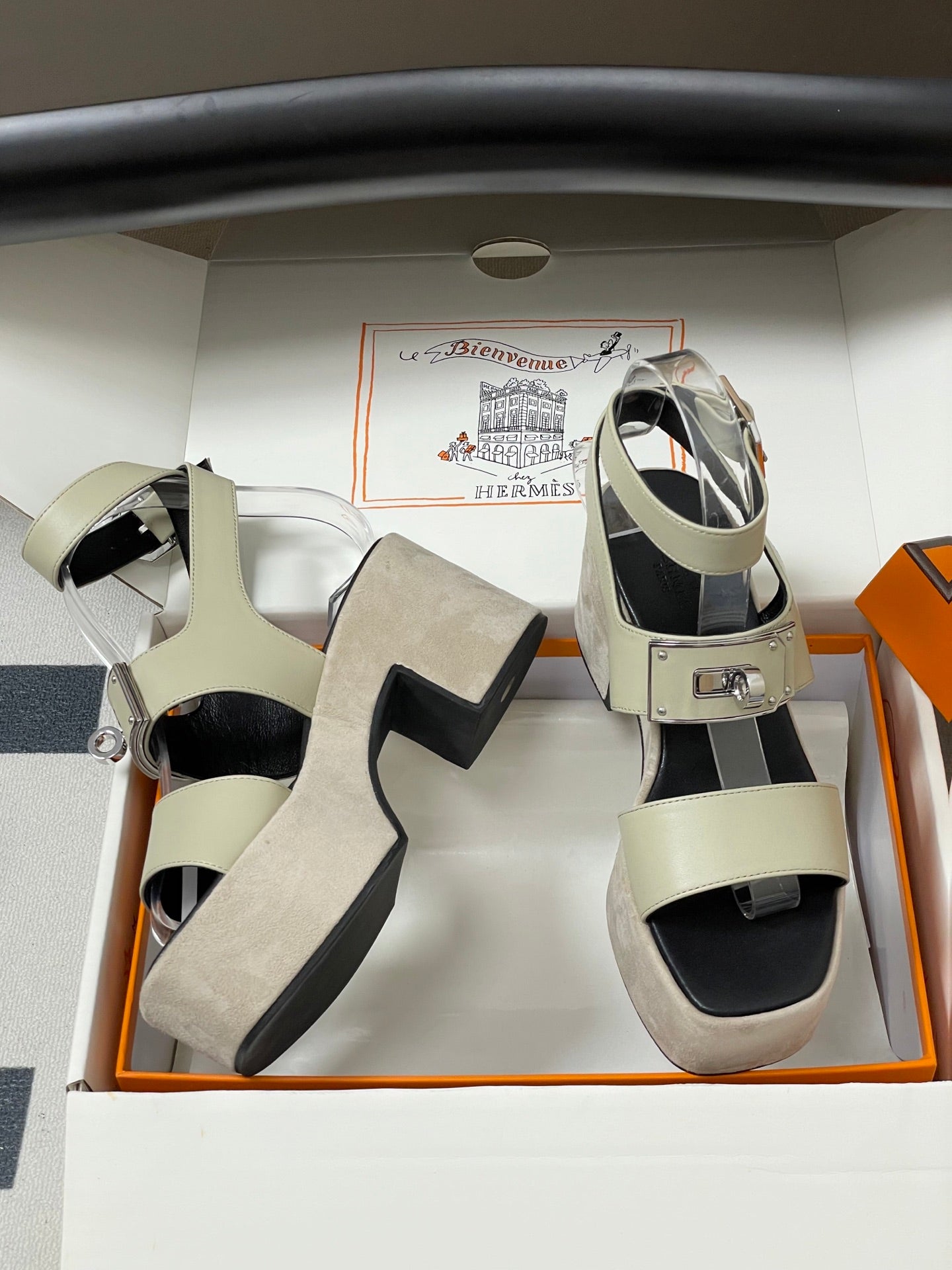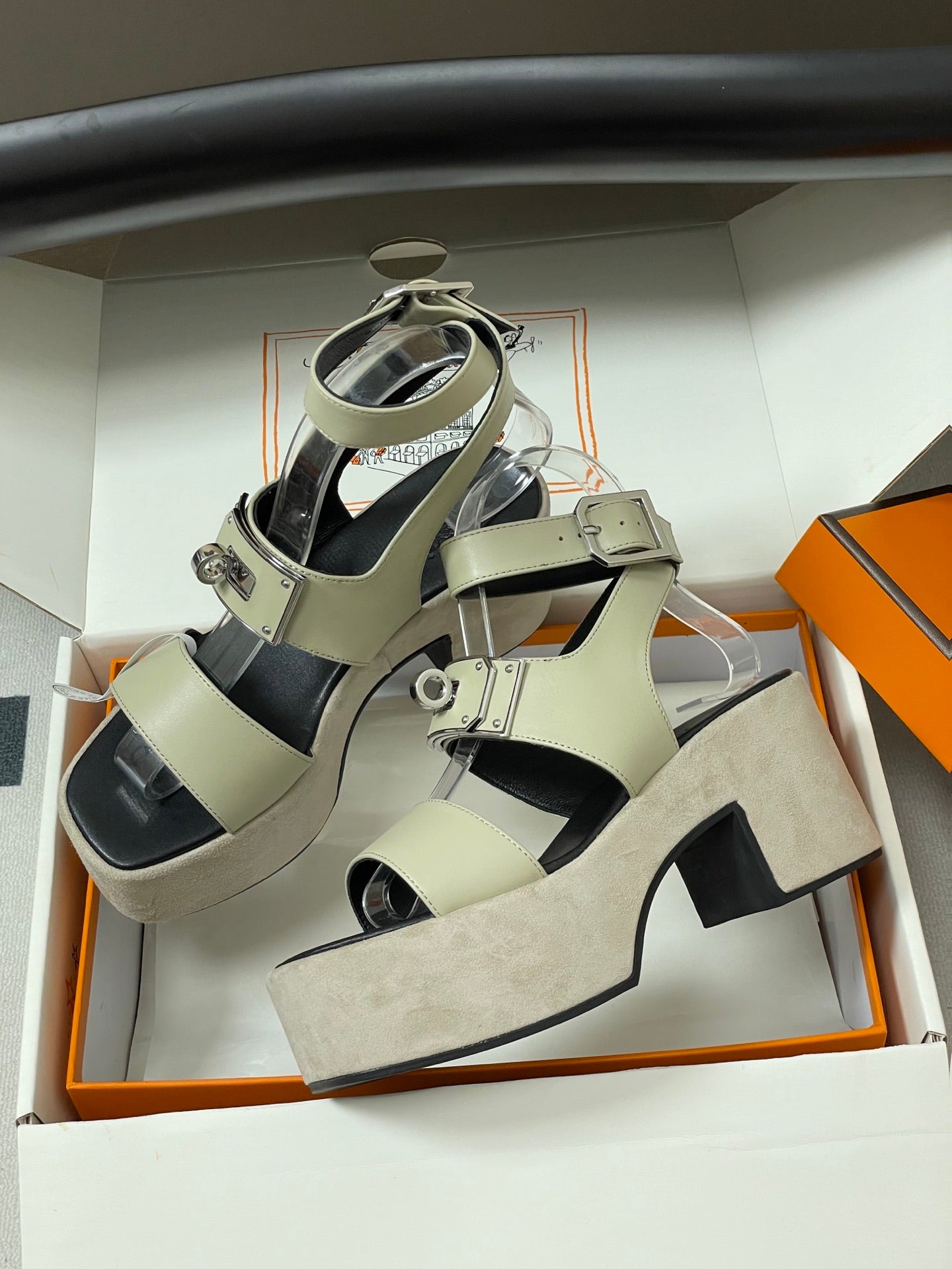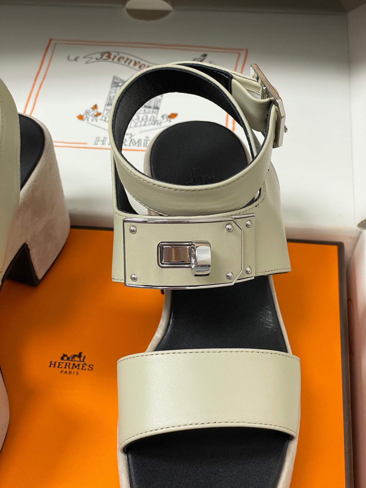 HM Lola 35 Heeled Sandals Taupe Goatskin 534764