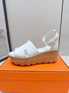 HM Luce 30 Sandal 65mm White Cowhide Cork 477968