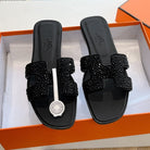 OASIS SLIDE IN BLACK CALFSKIN WITH CRYSTALS