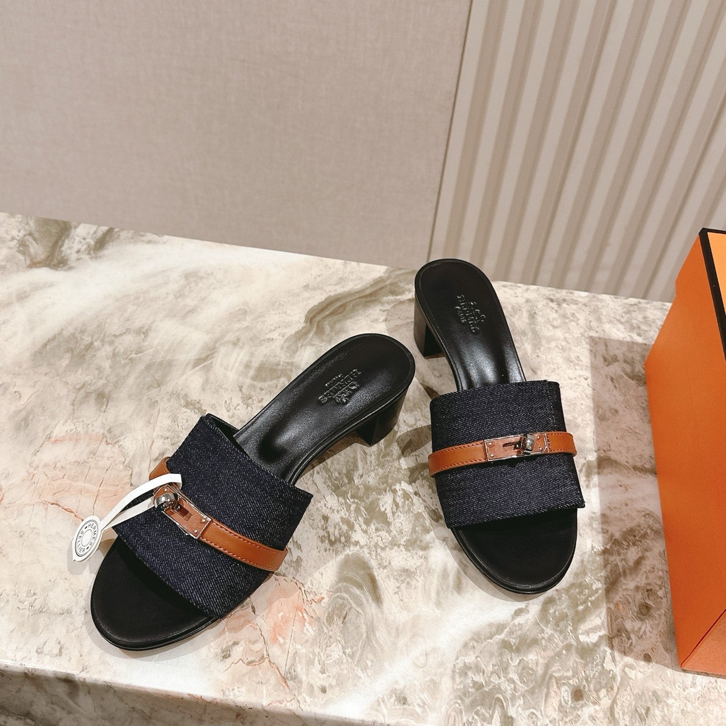 Gigi 50 Sandal Blue Black Calfskin Denim 445329