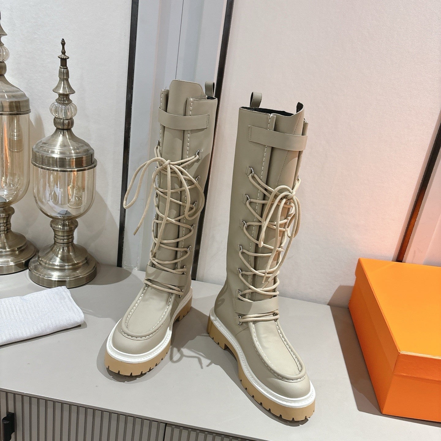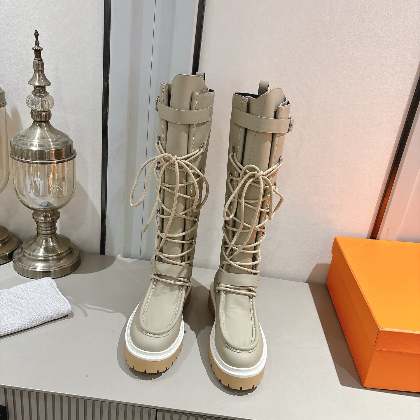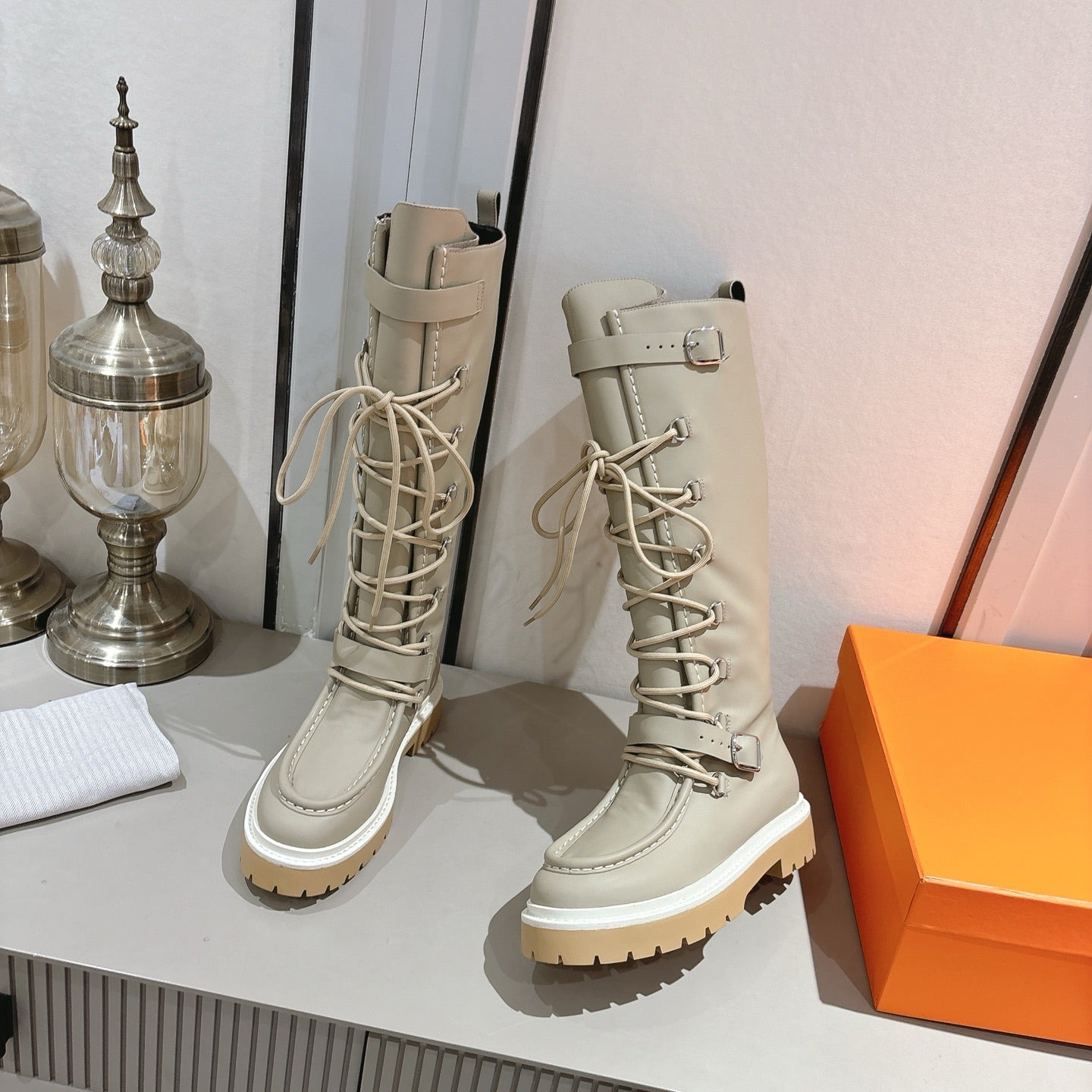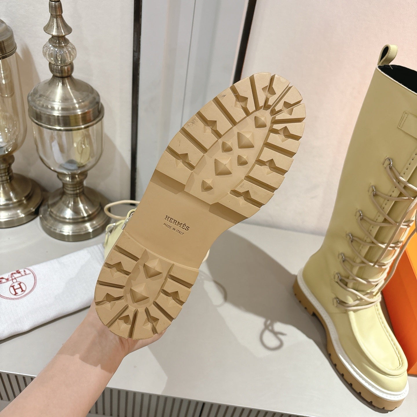 HM Lace Up Boots 25mm Belt Buckle Yellow-beige Leather 466587