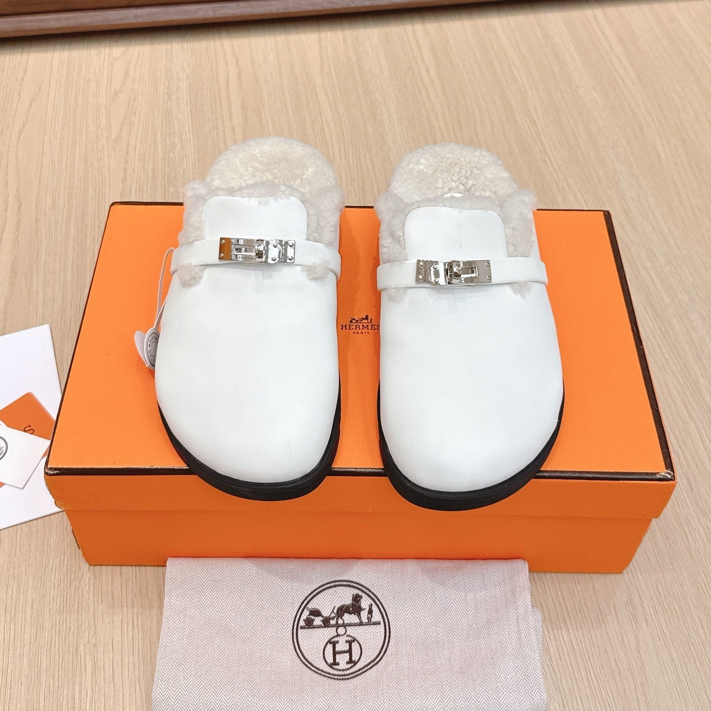 HM 25 Carlotta Mule White Shearing Calfskin 462186
