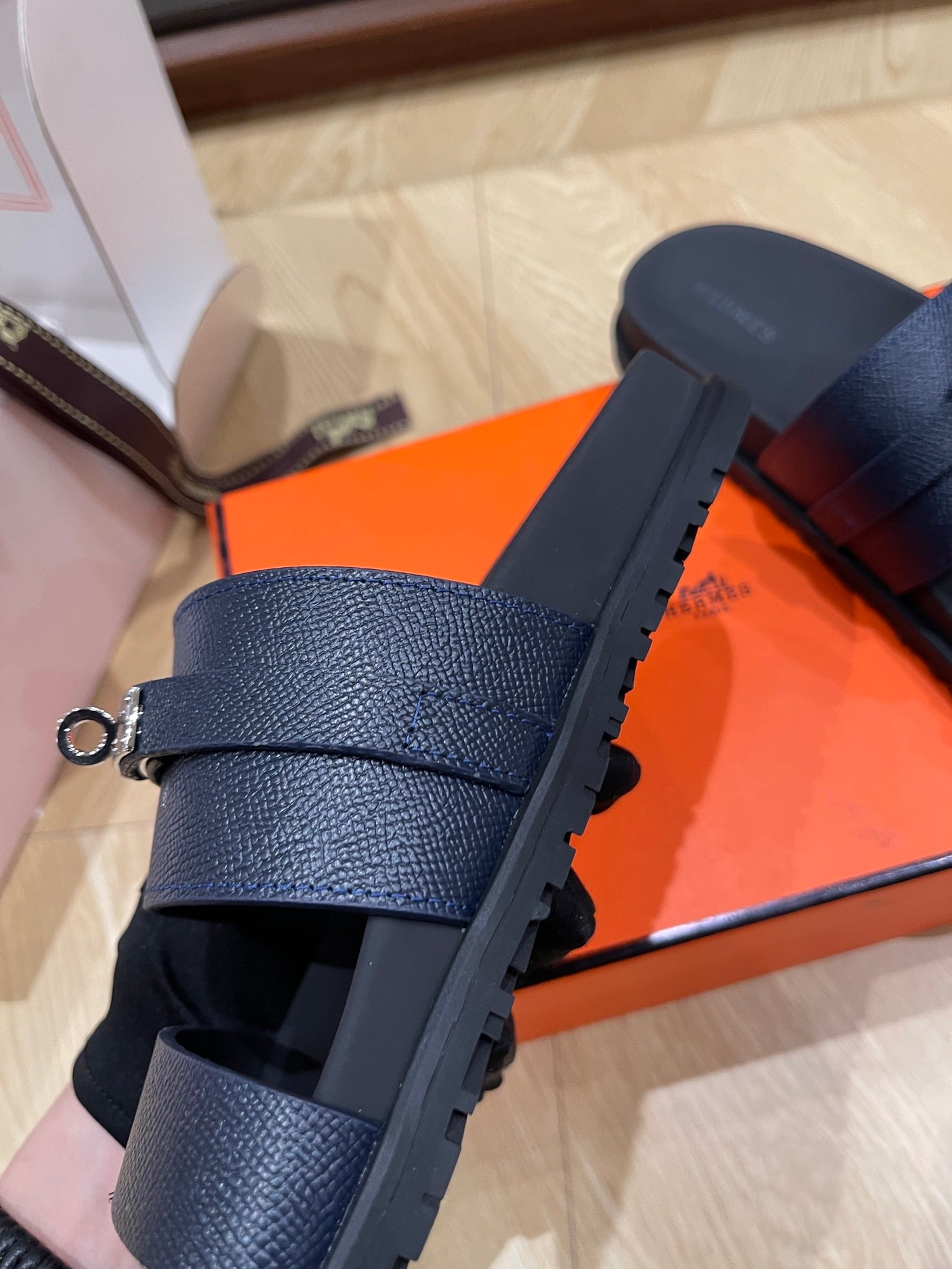 HM 25 Jackson Sandal Dark Blue Grained Calfskin