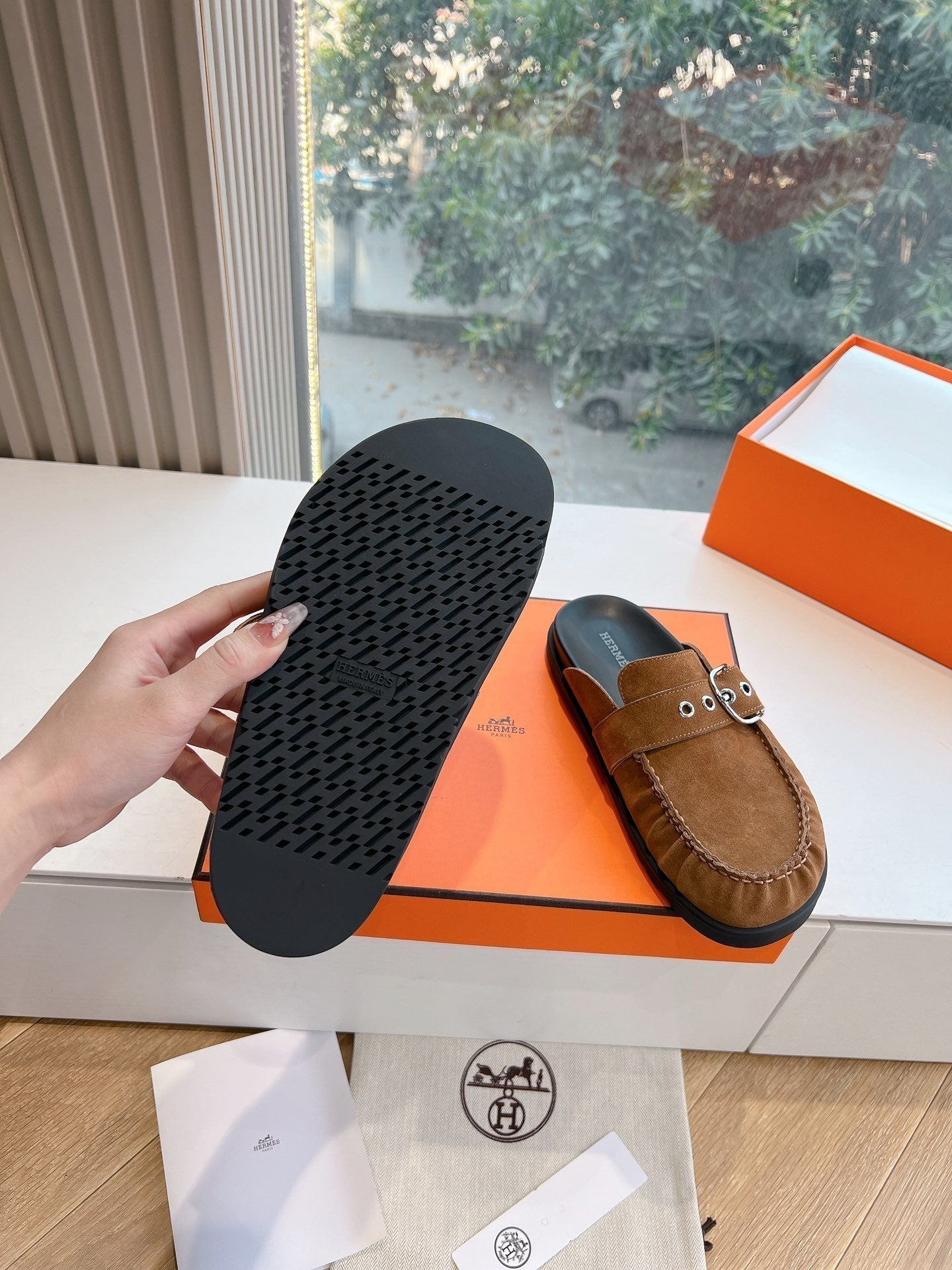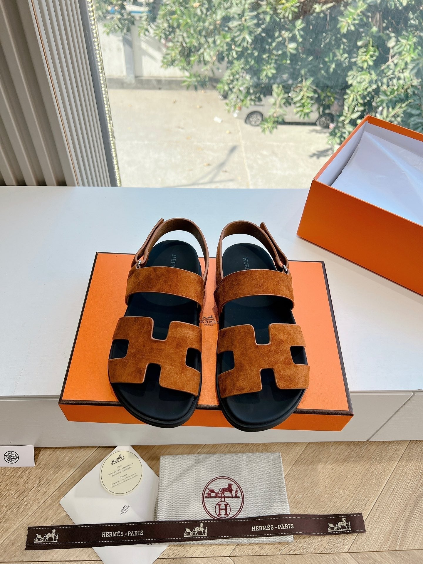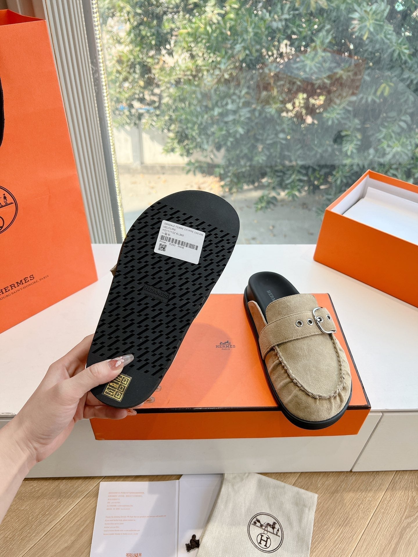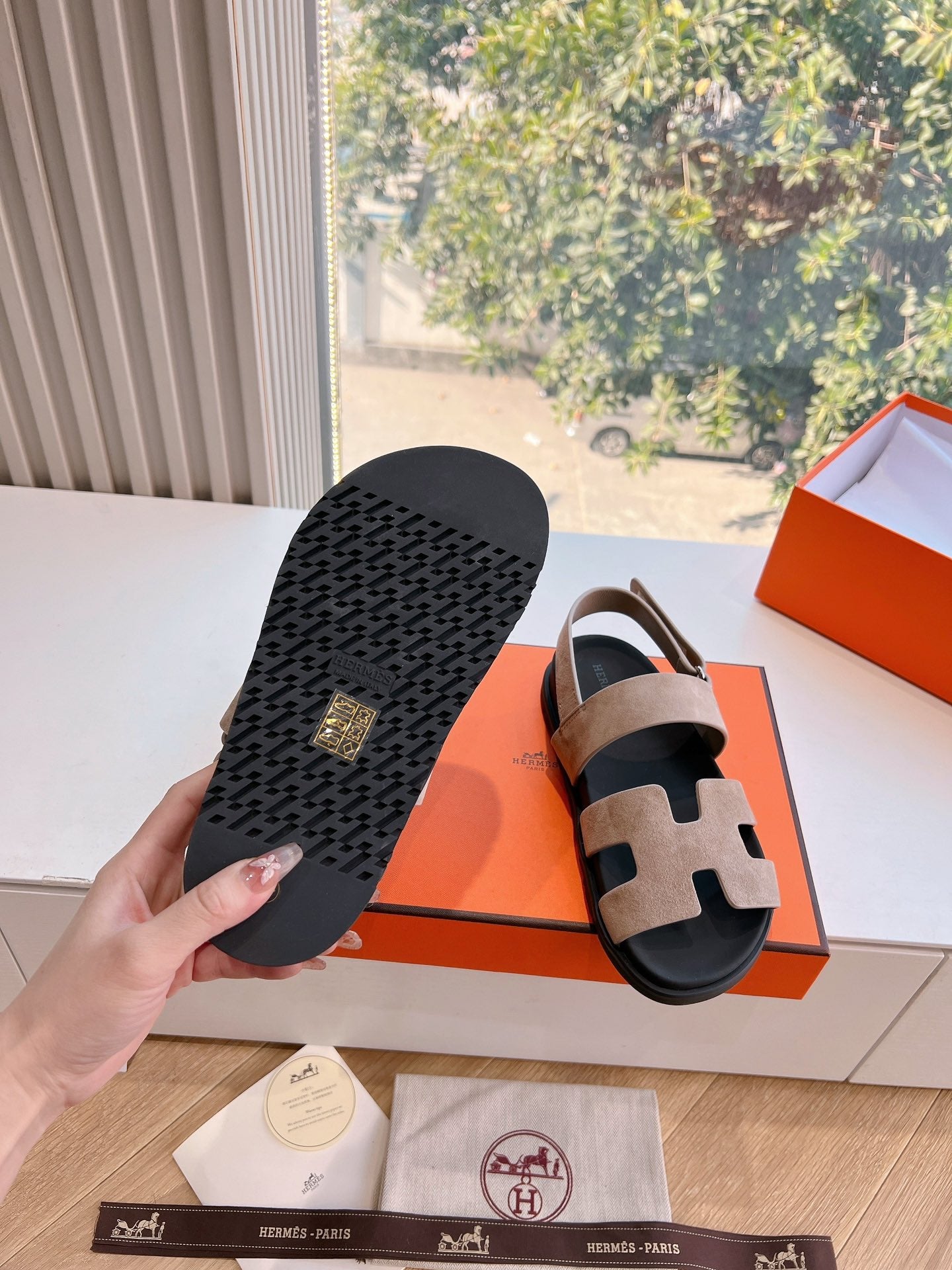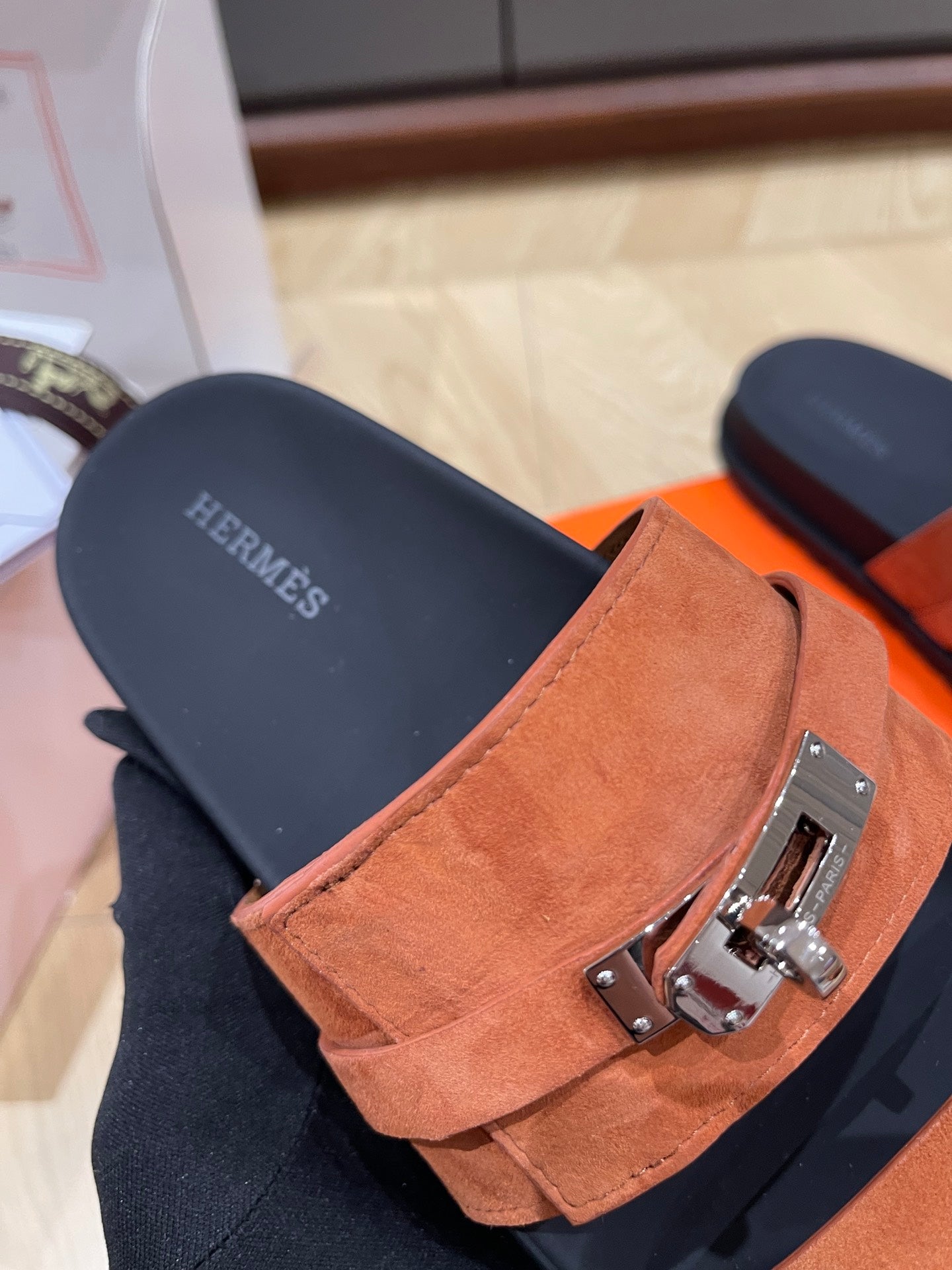 HM 25 Chypre Sandal Orange Red Suede Calfskin Silver H