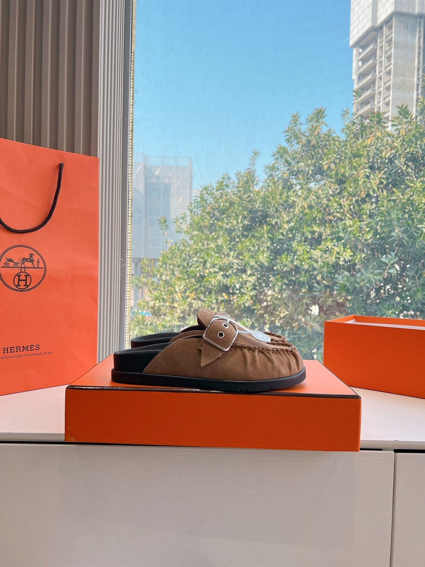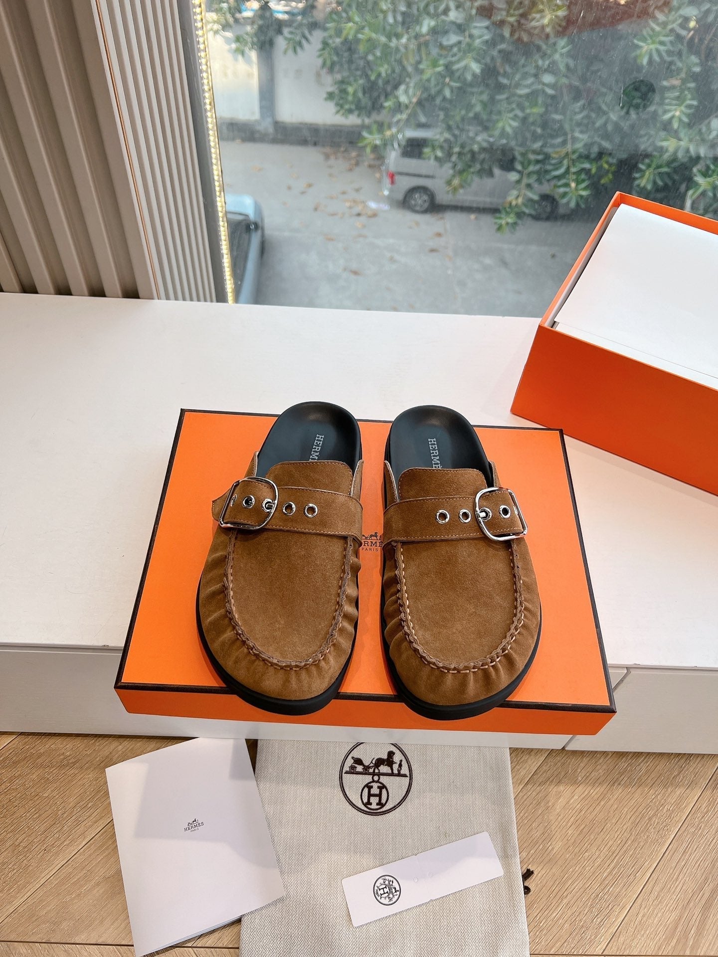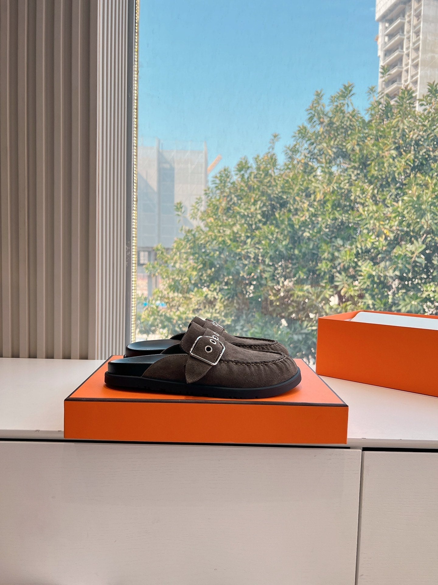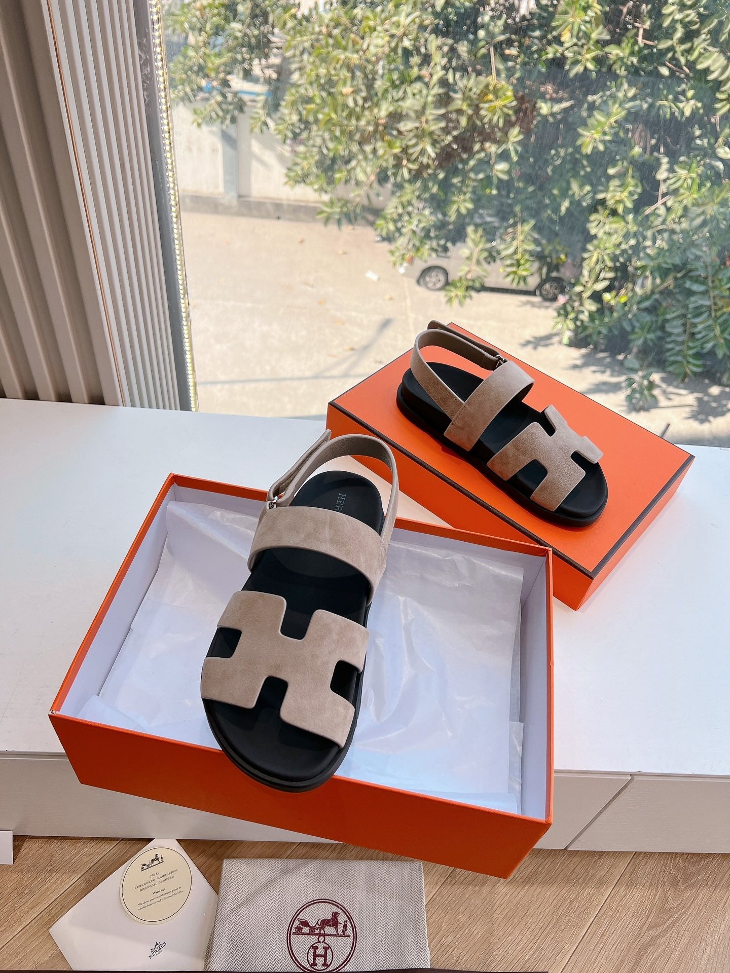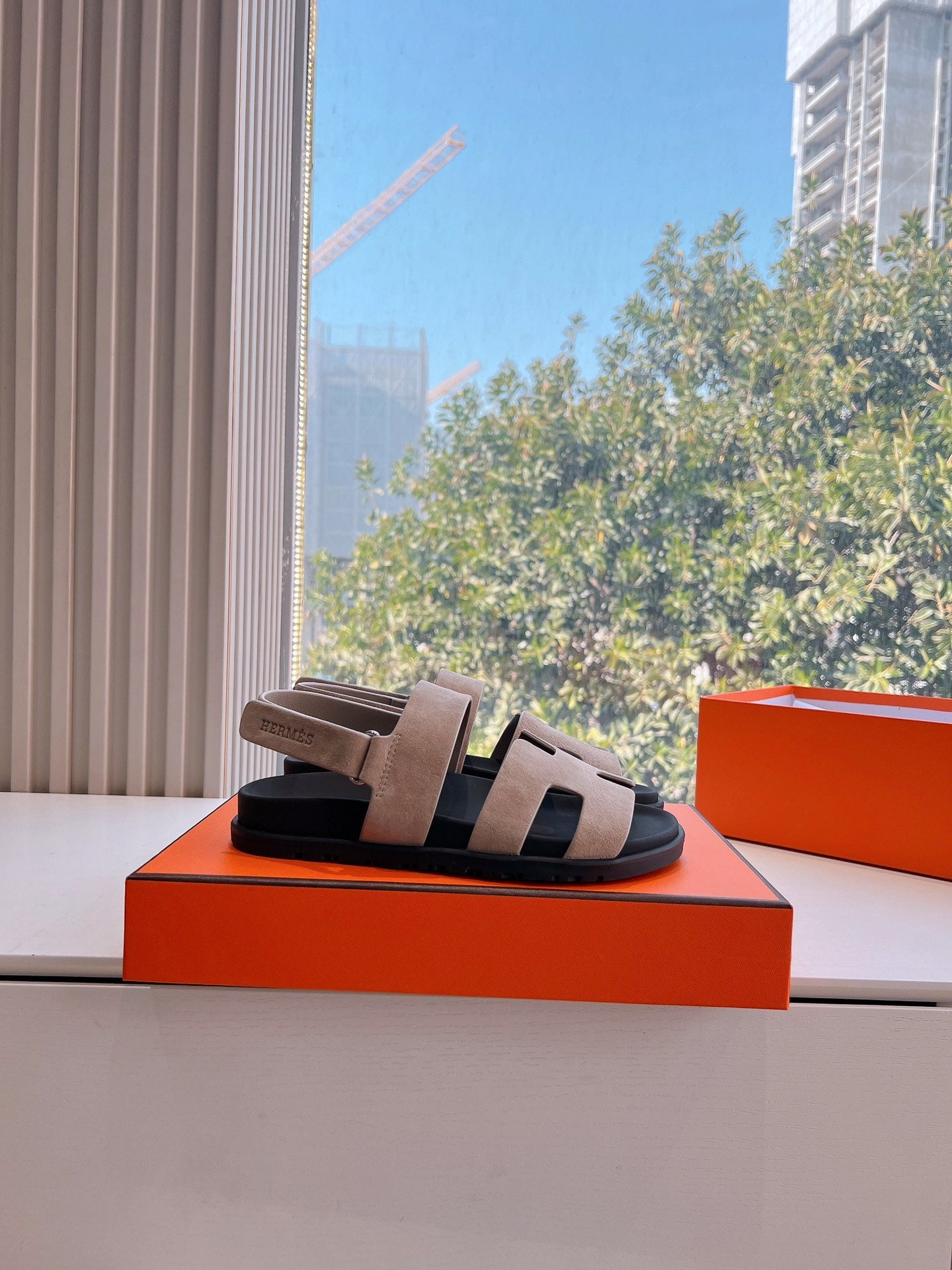 HM 25 Chypre Sandal Orange Red Suede Calfskin Silver H