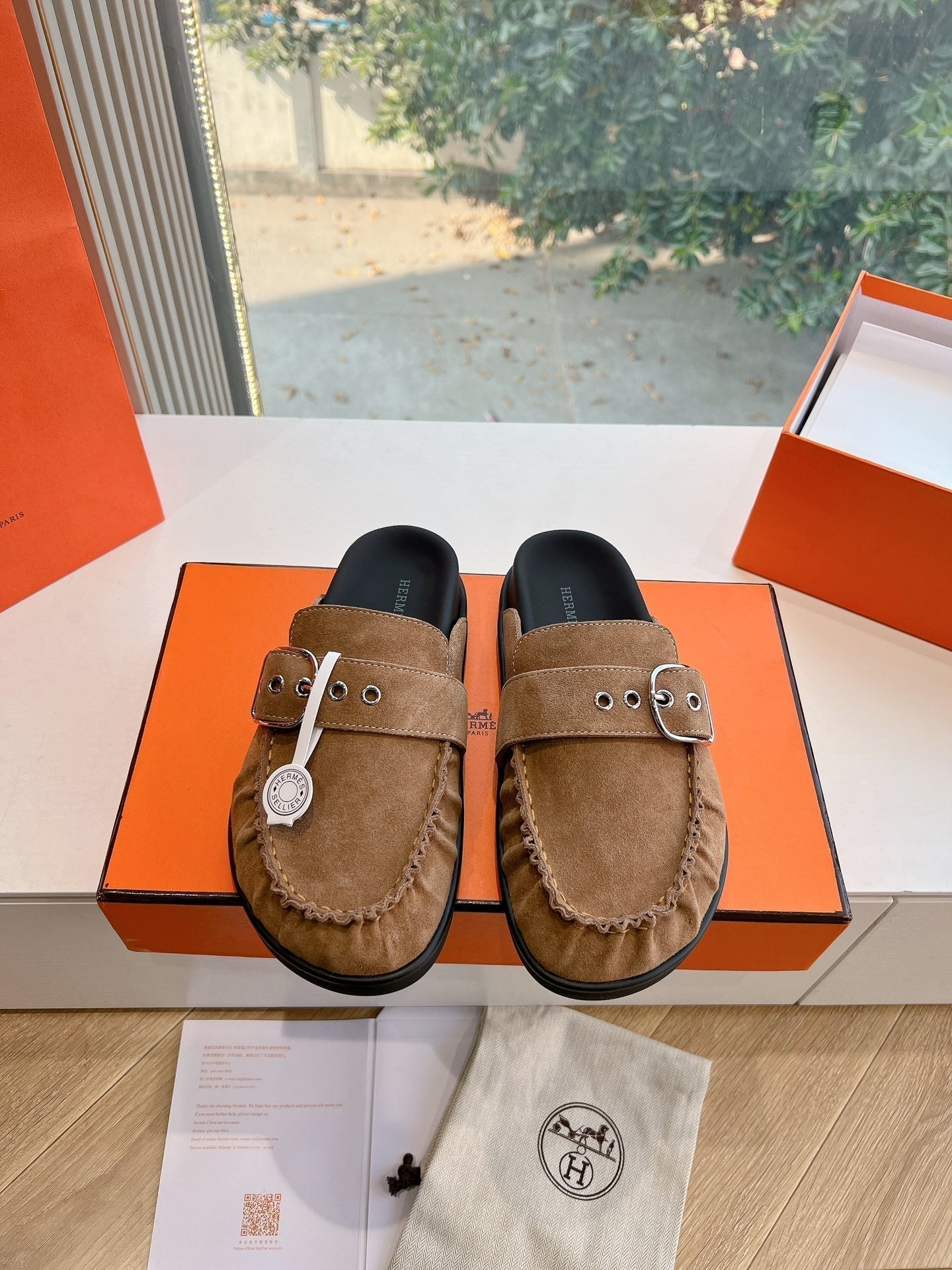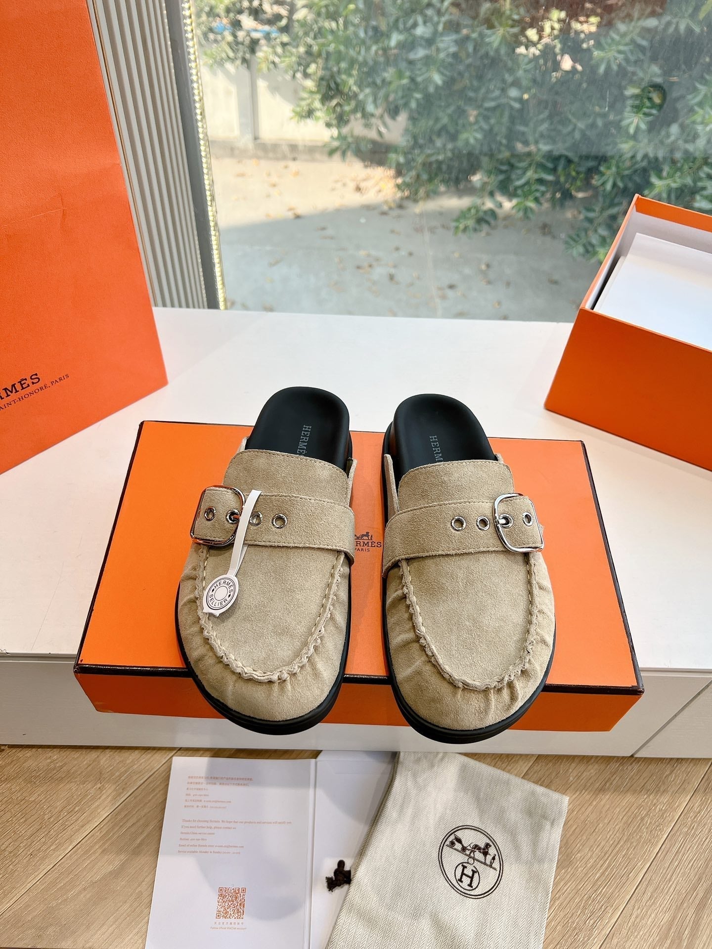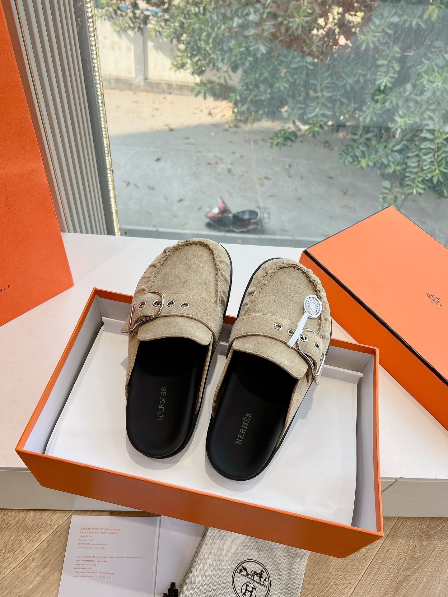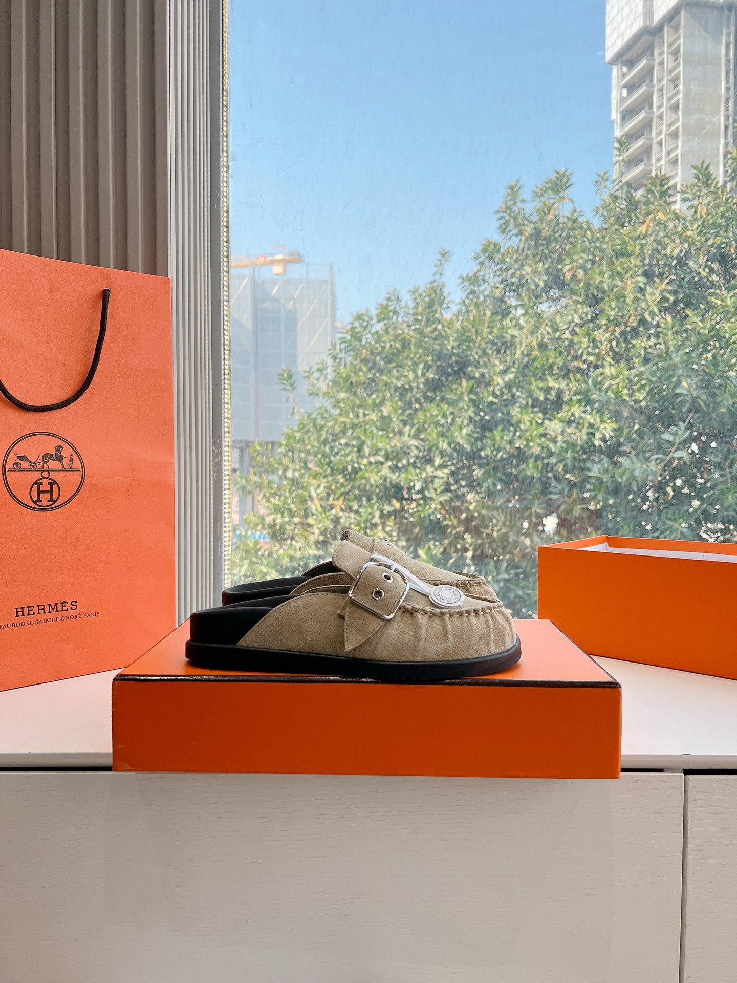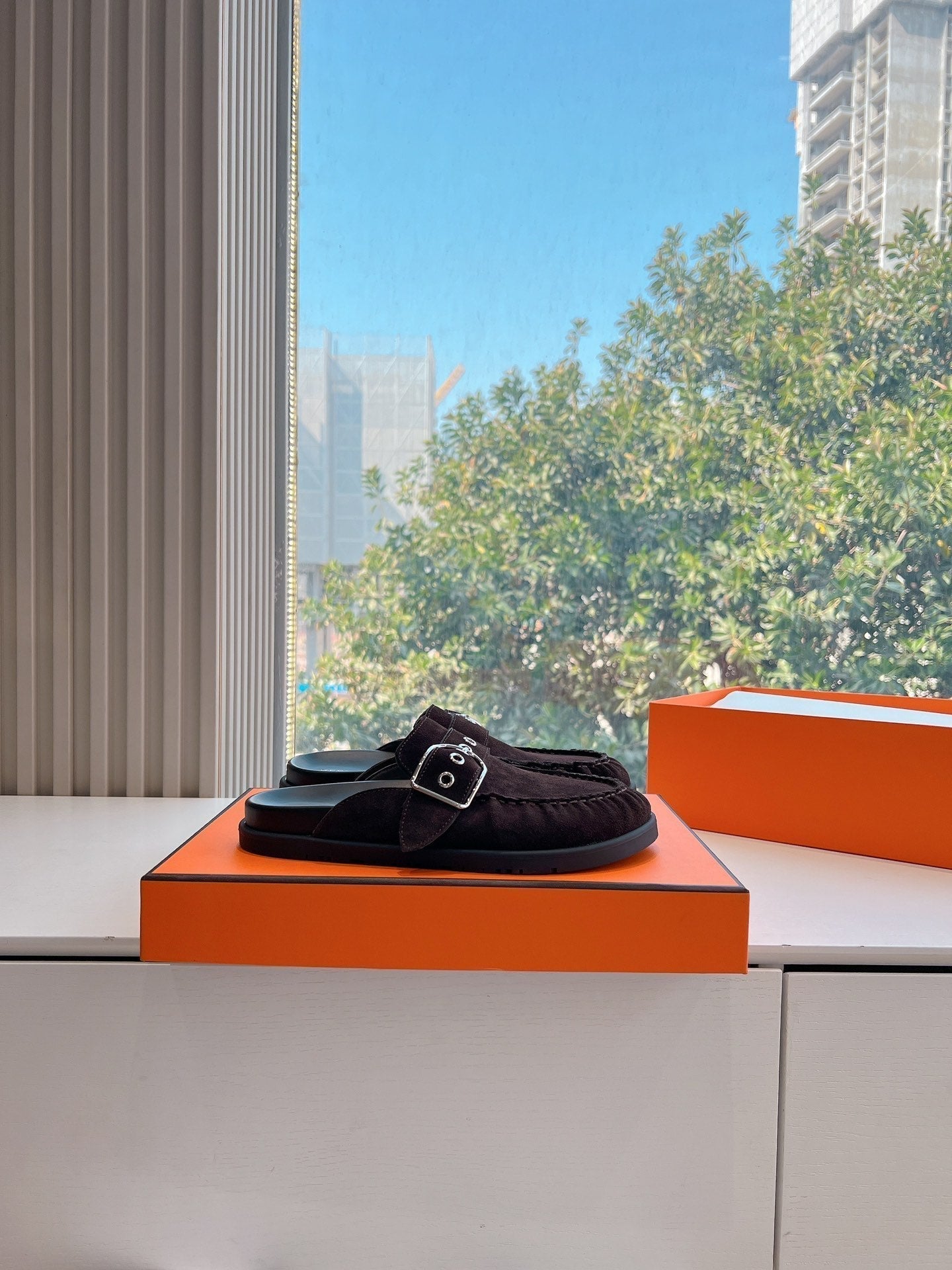 HM 25 Chypre Sandal Orange Red Suede Calfskin Silver H
