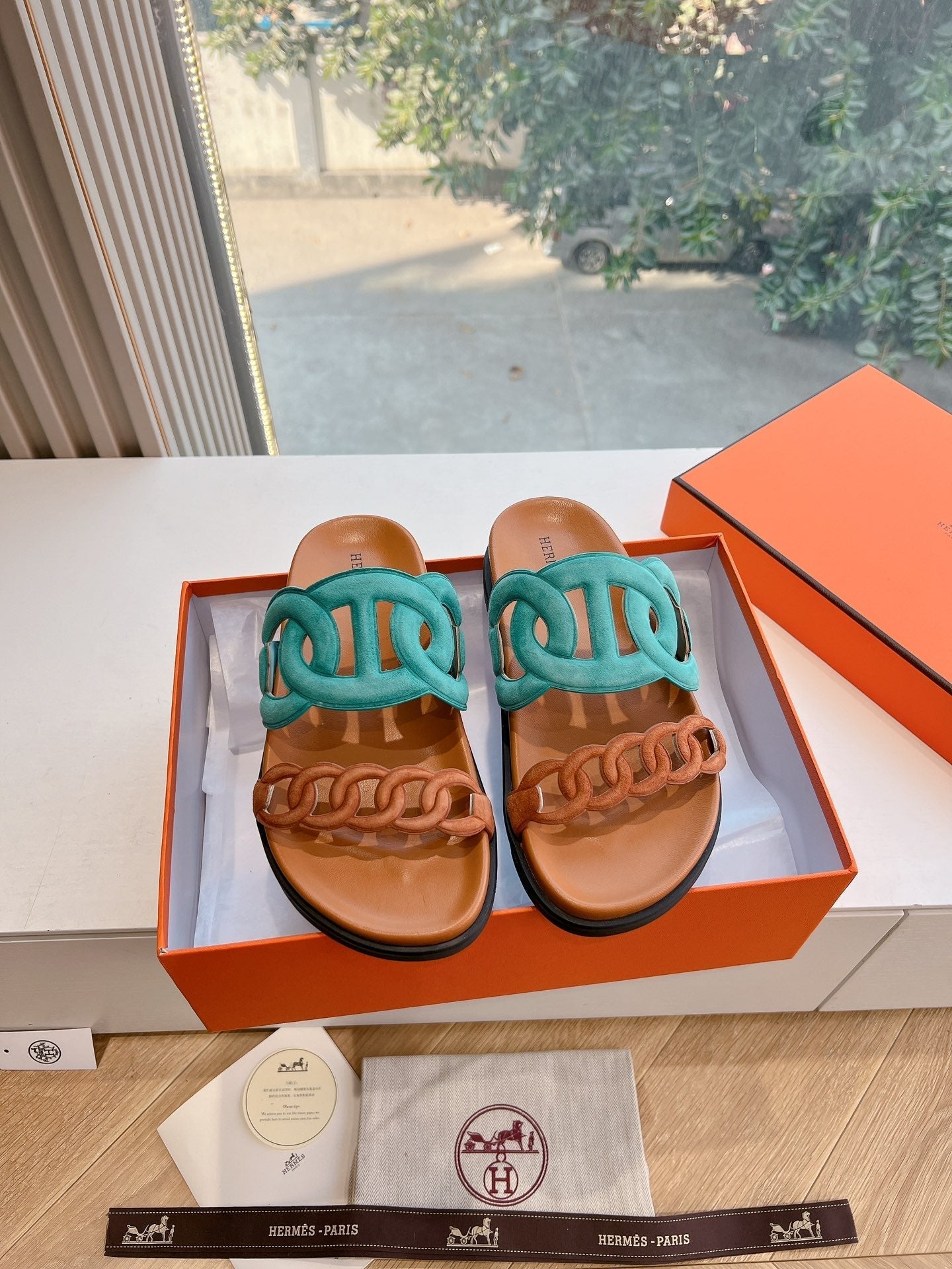 HM 25 Extra Sandal Khaki Tiffany Blue Calfskin