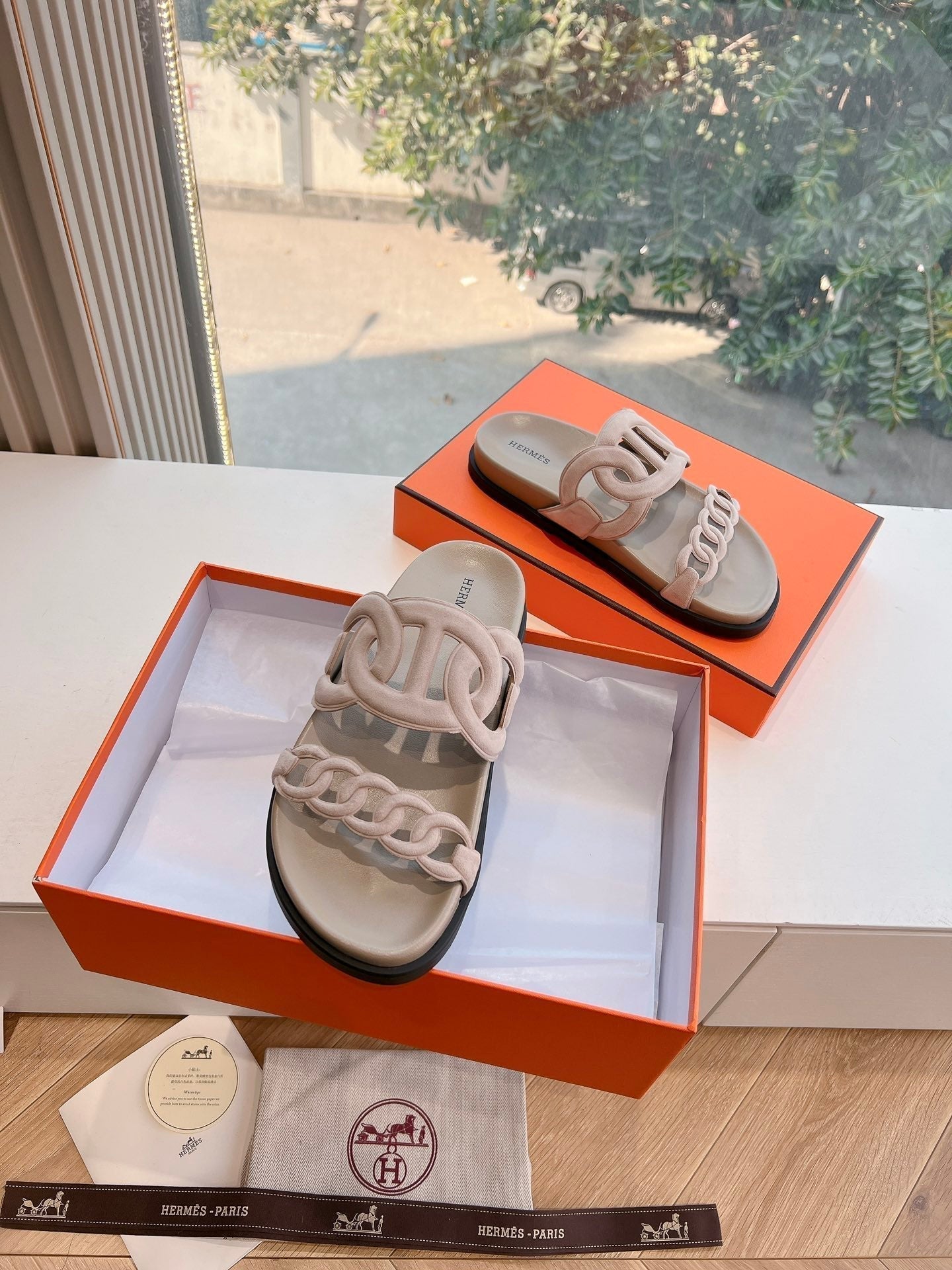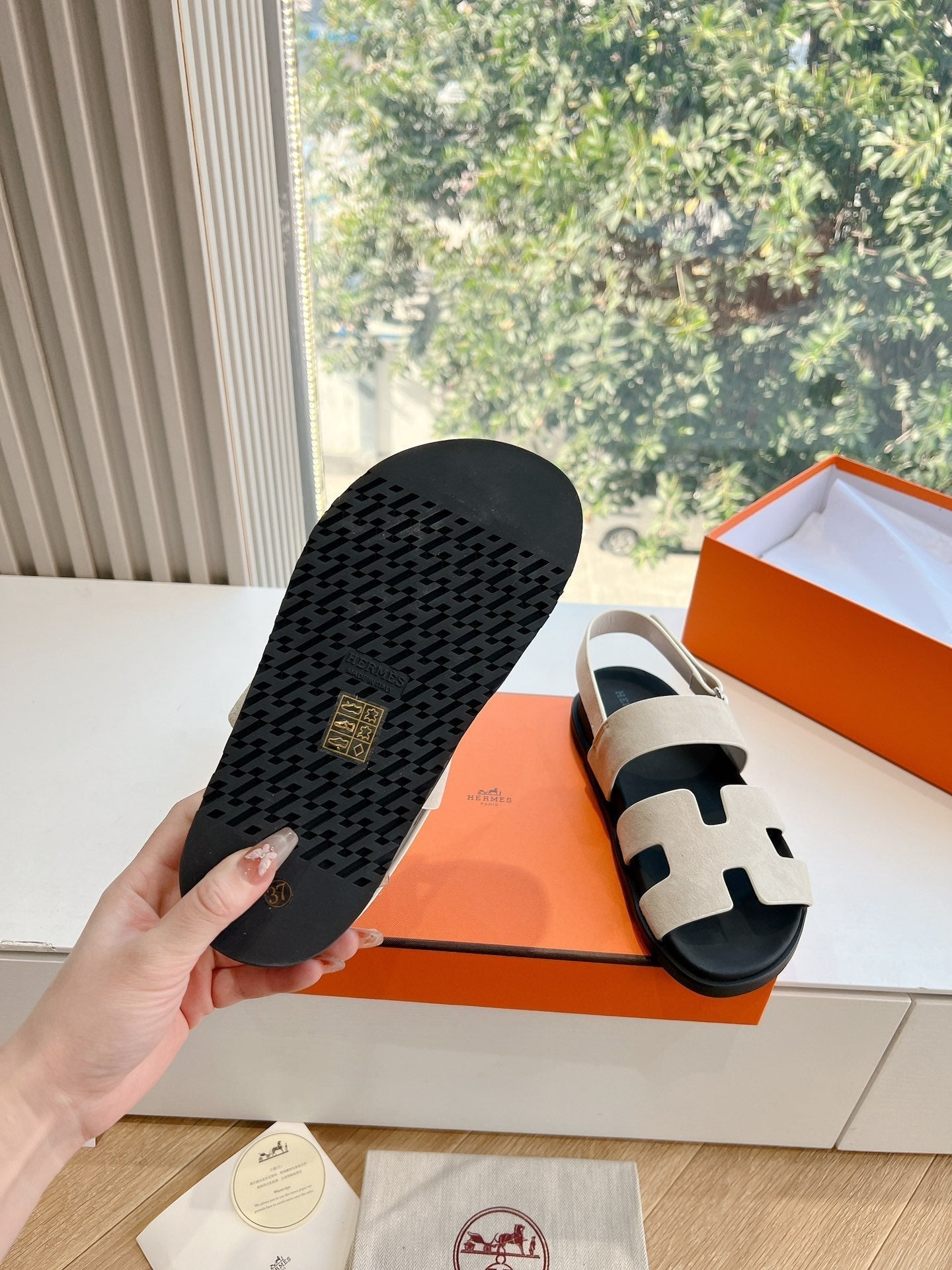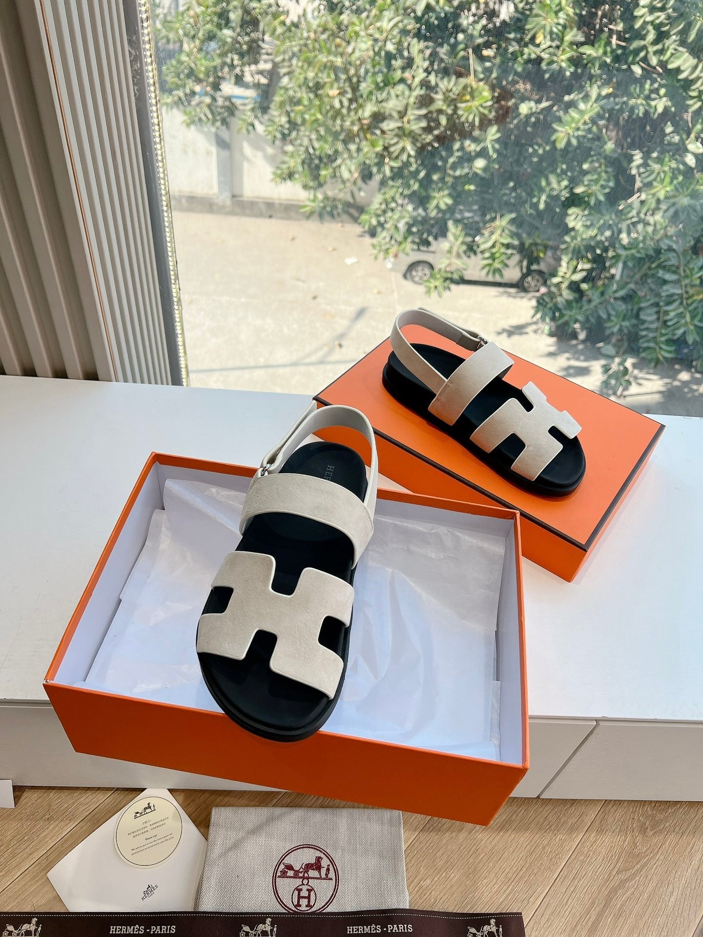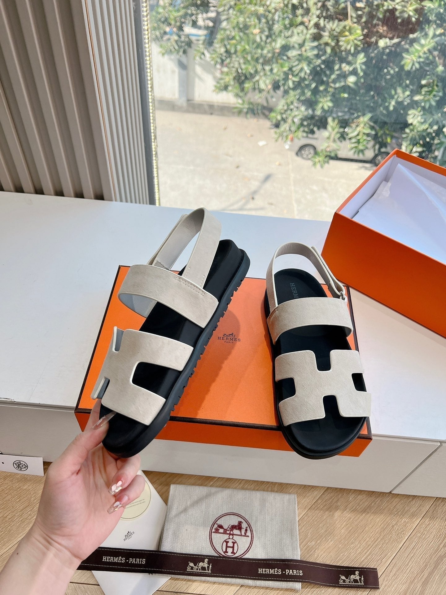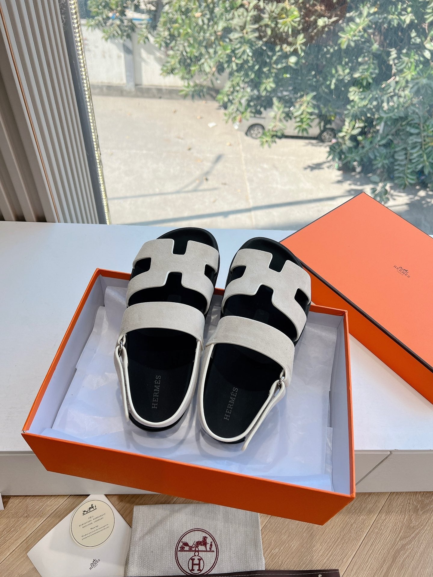 HM 25 Chypre Sandal White Calfskin Silver H