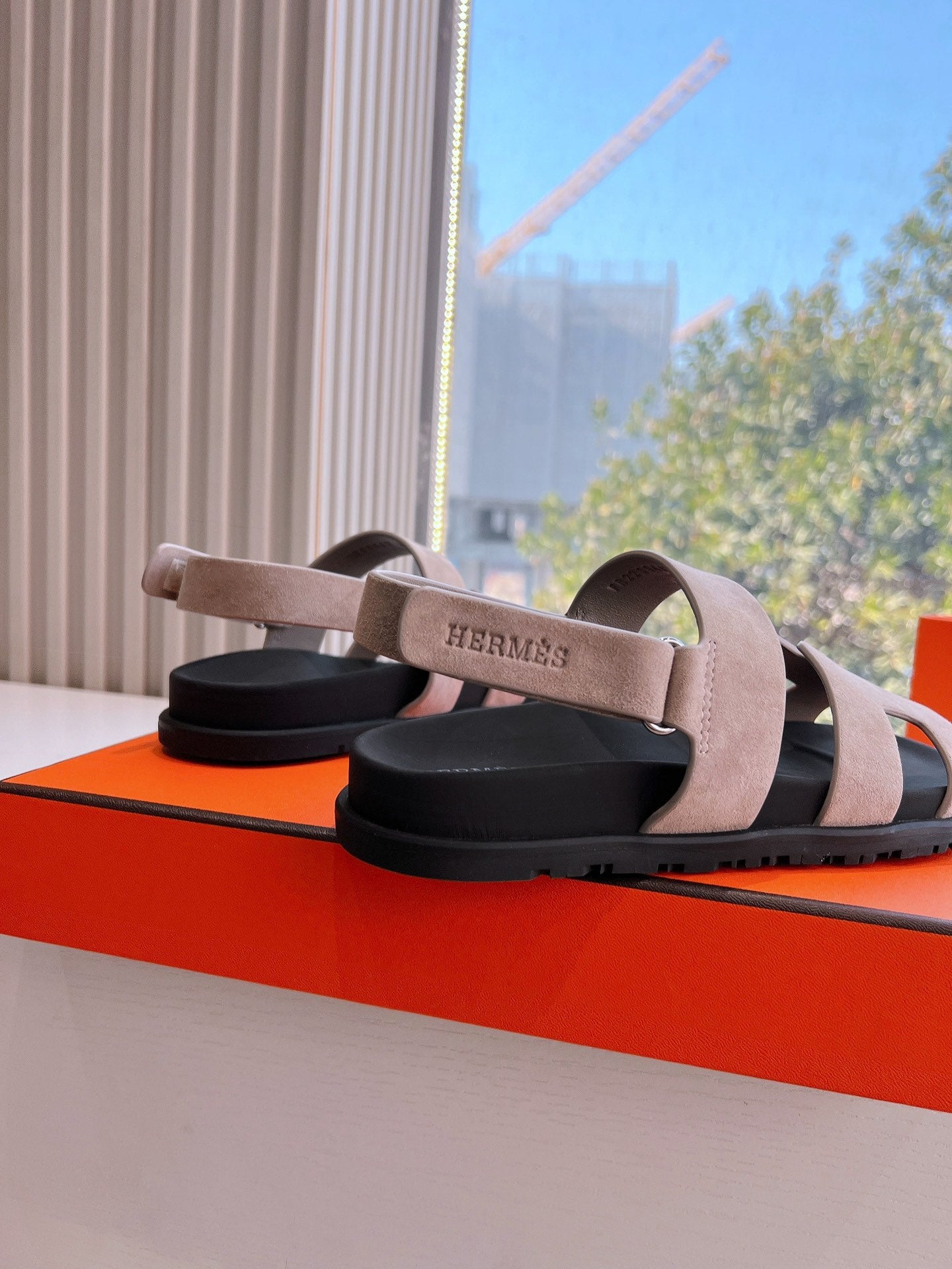 HM 25 Genius Sandal Rose Brown Suede Black Calfskin