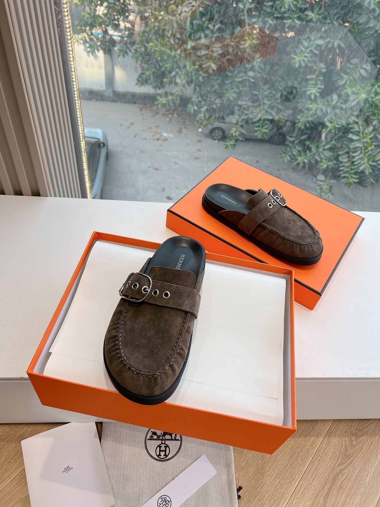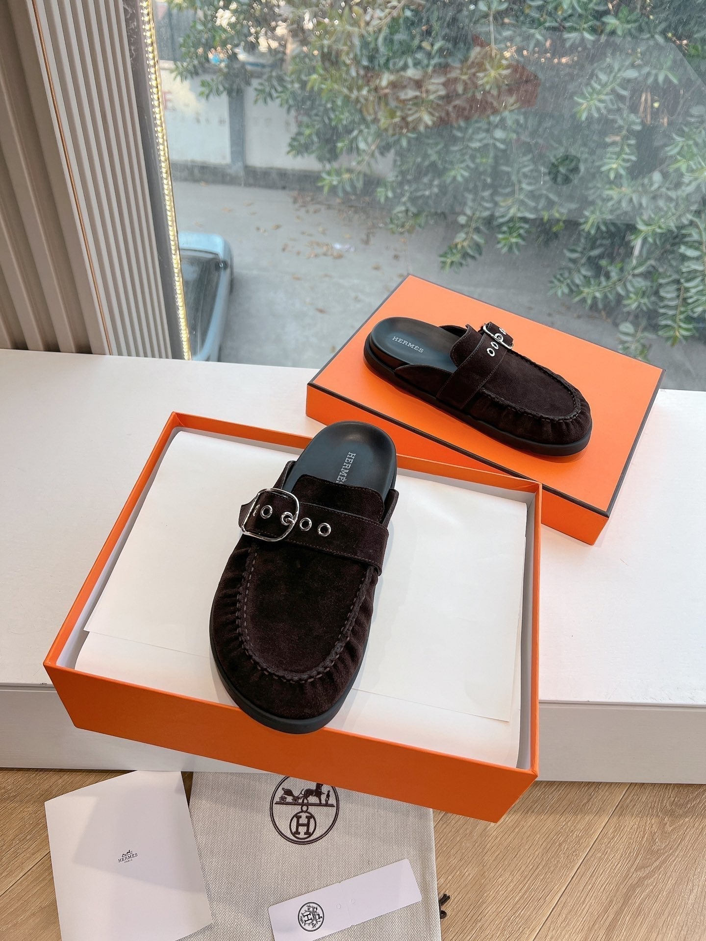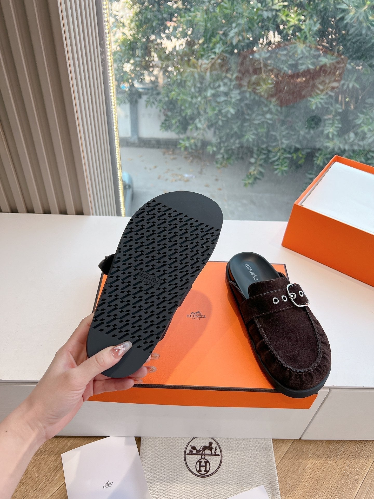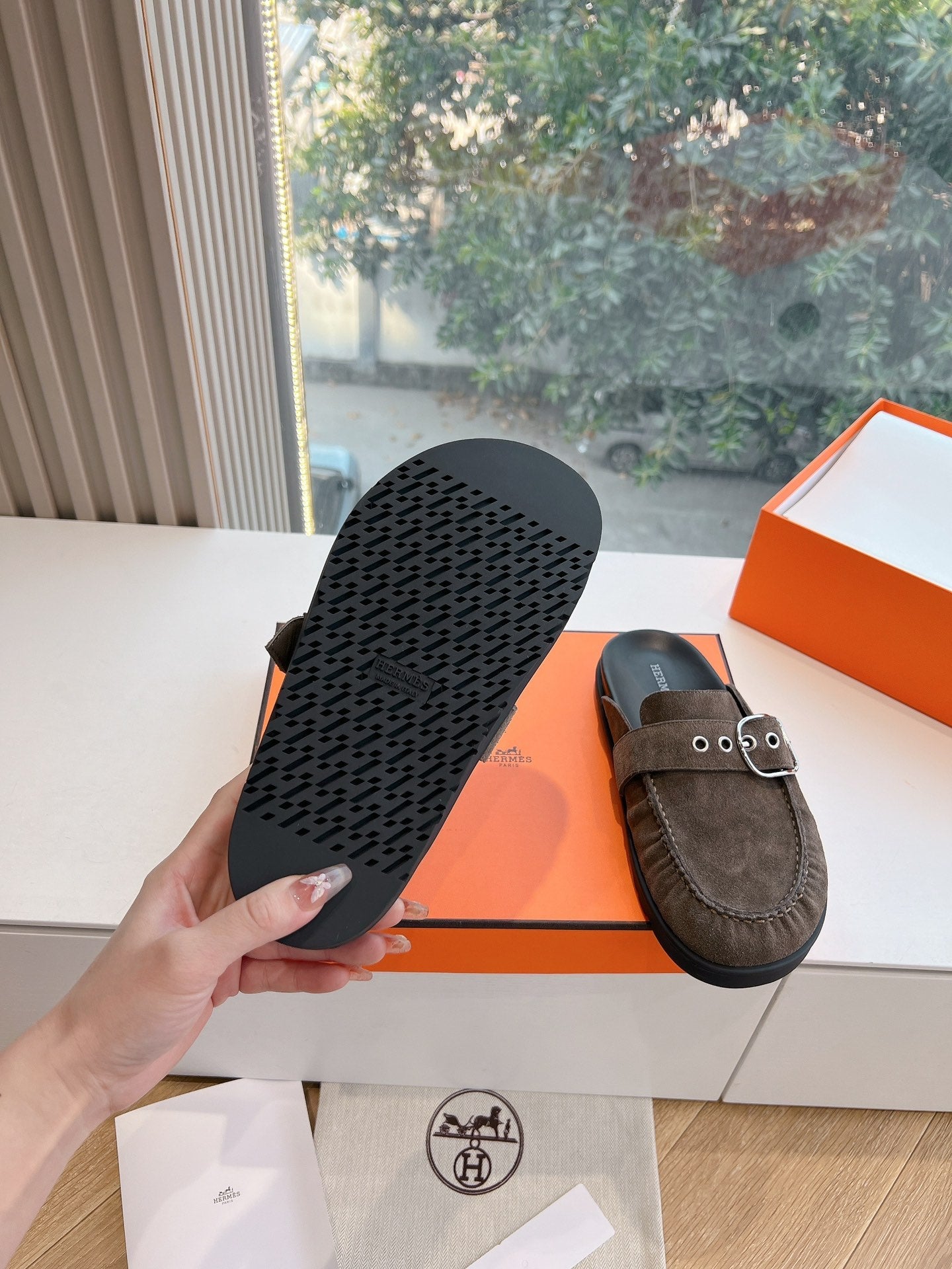 HM 25 Chypre Sandal Chocolate Suede Calfskin Silver H