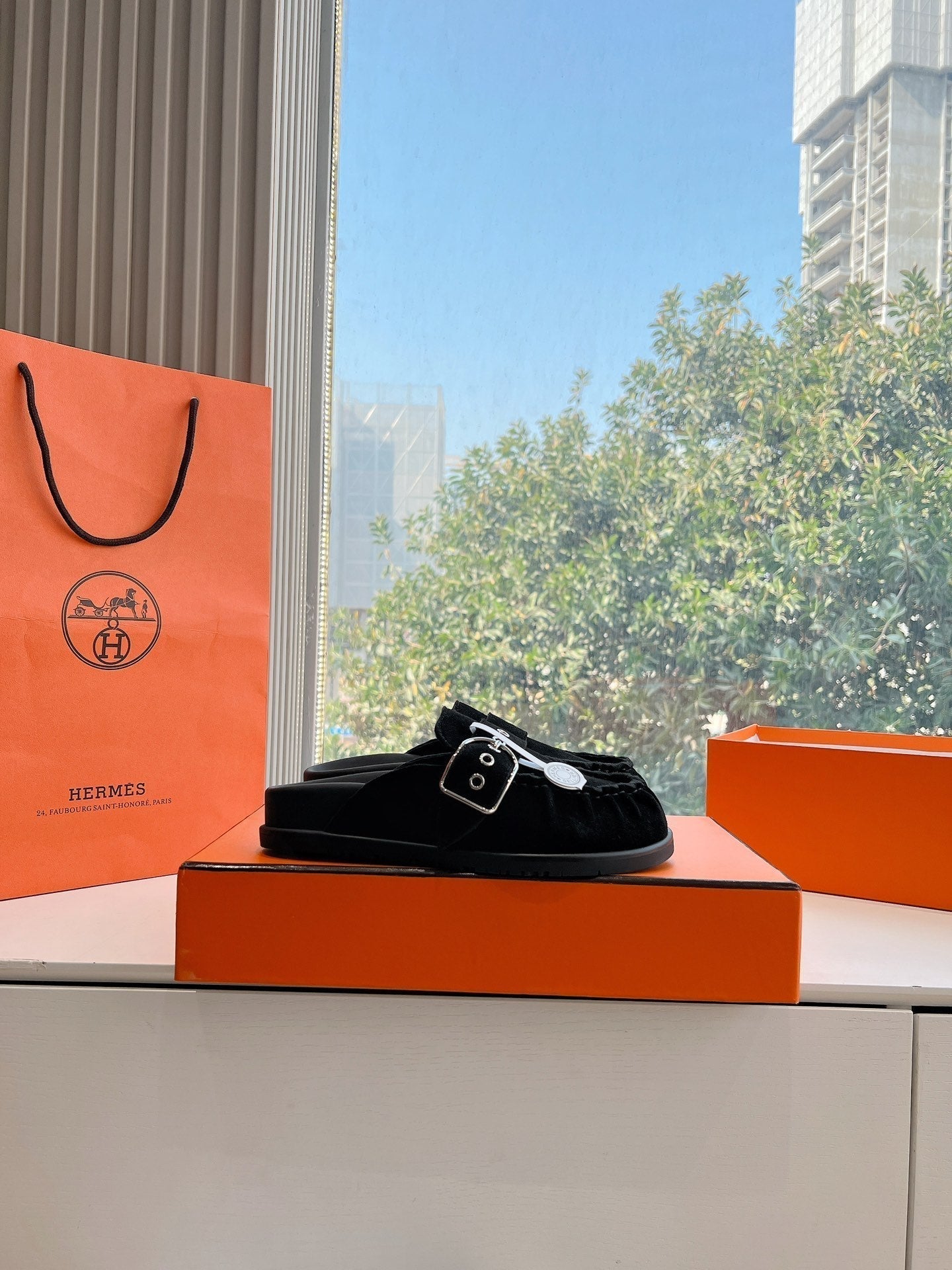 HM 25 Chypre Sandal Black Calfskin Silver H