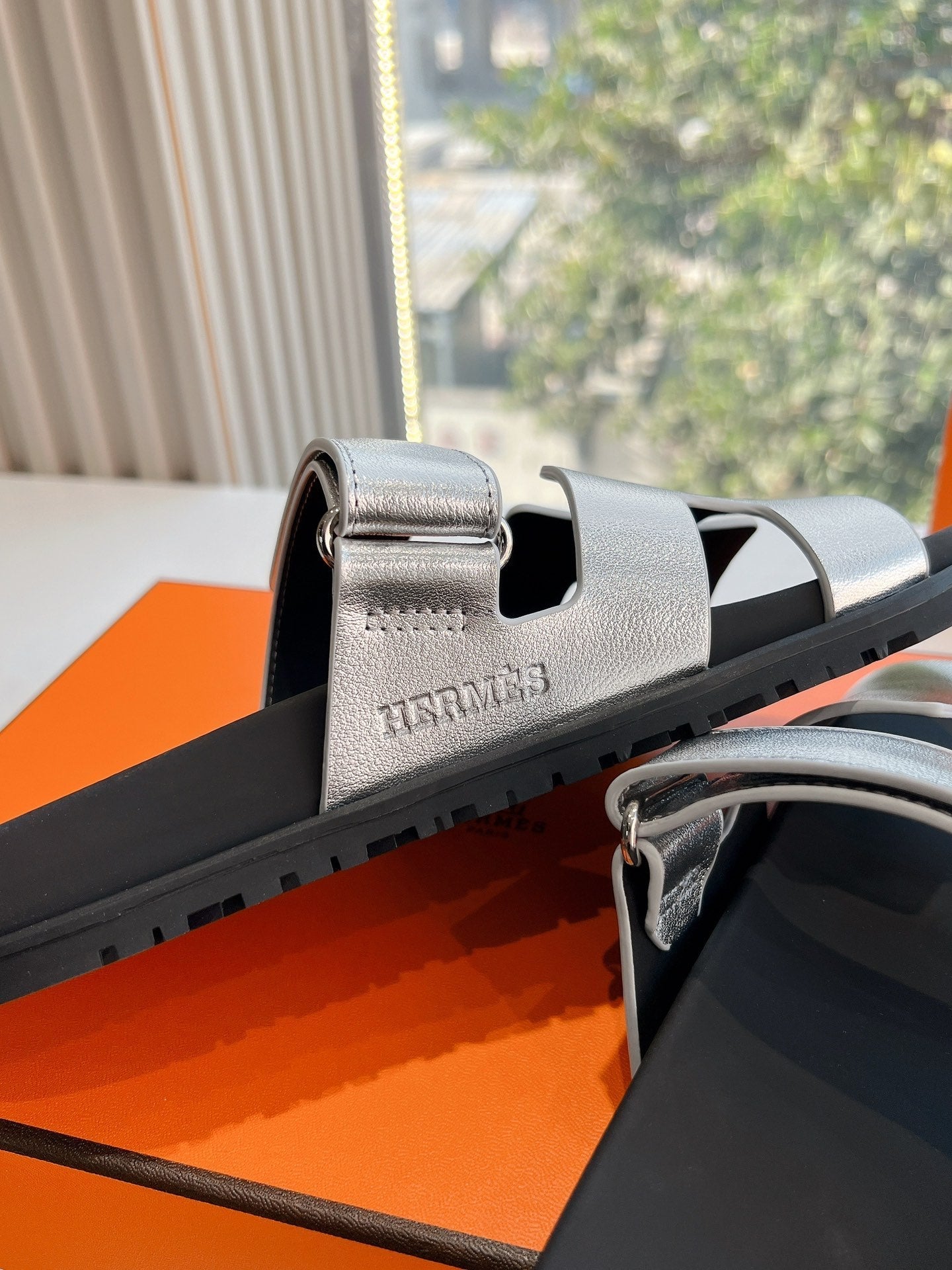 HM 25 Oran Sandal Black Silver Metalic Calfskin