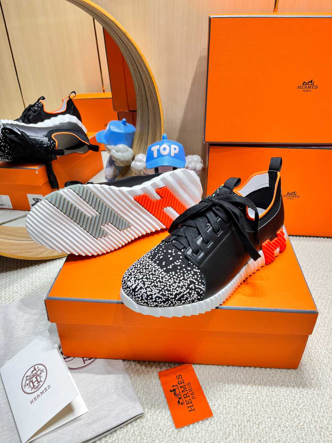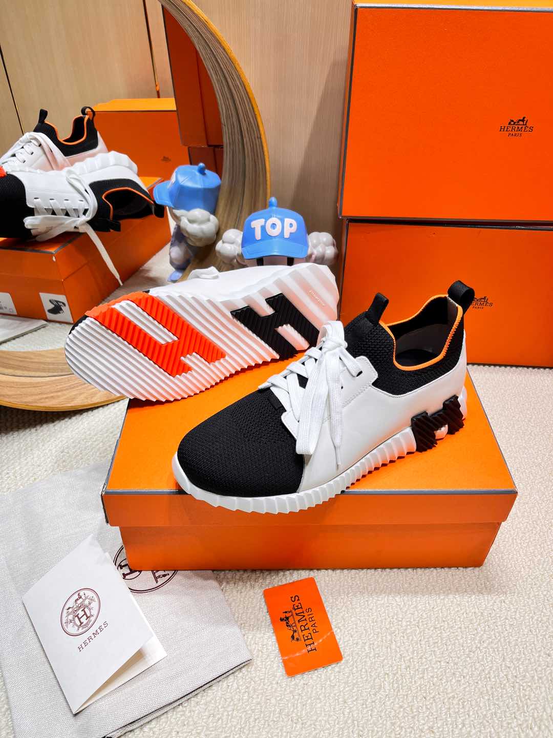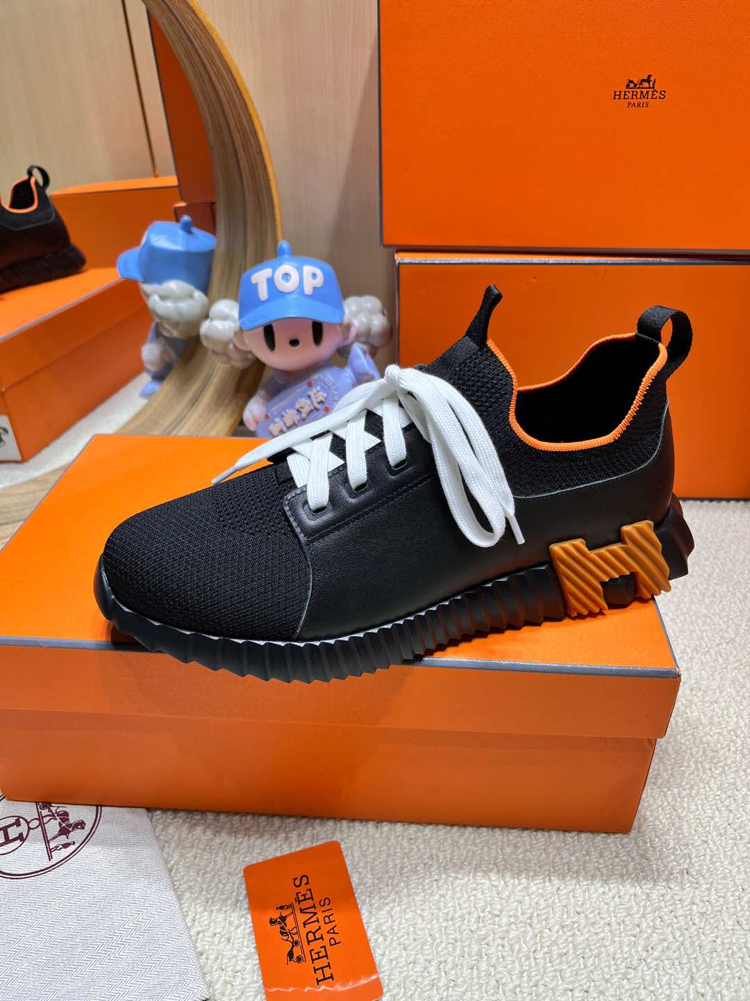 HM Depart slip-on Sneaker White Logo Black Knitted fabric and Calfskin 206335