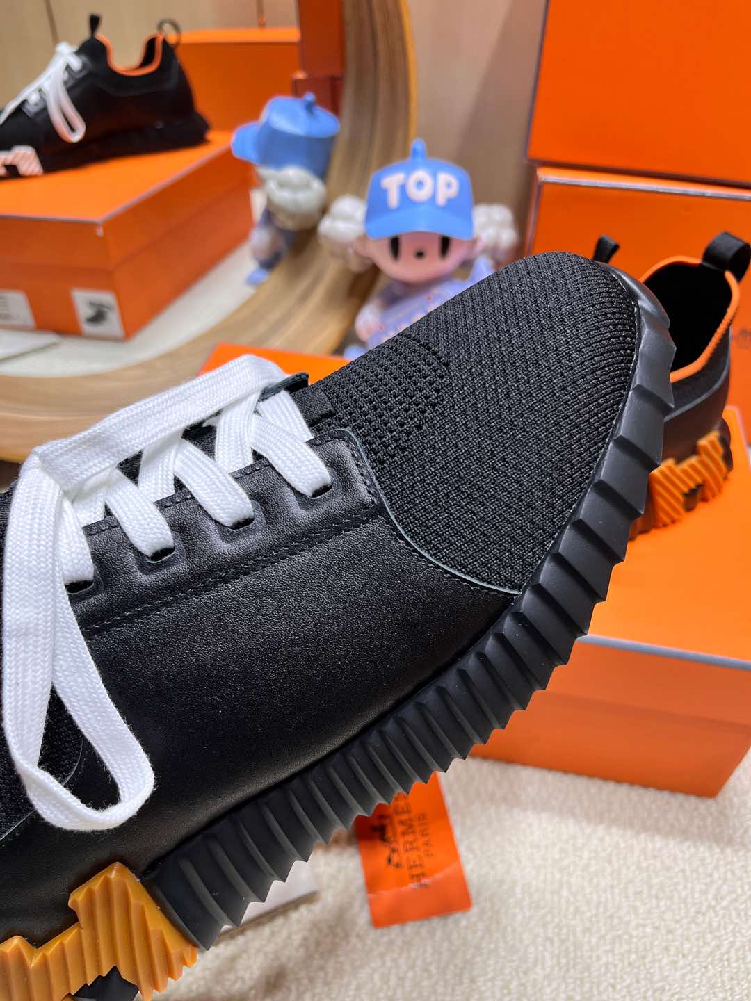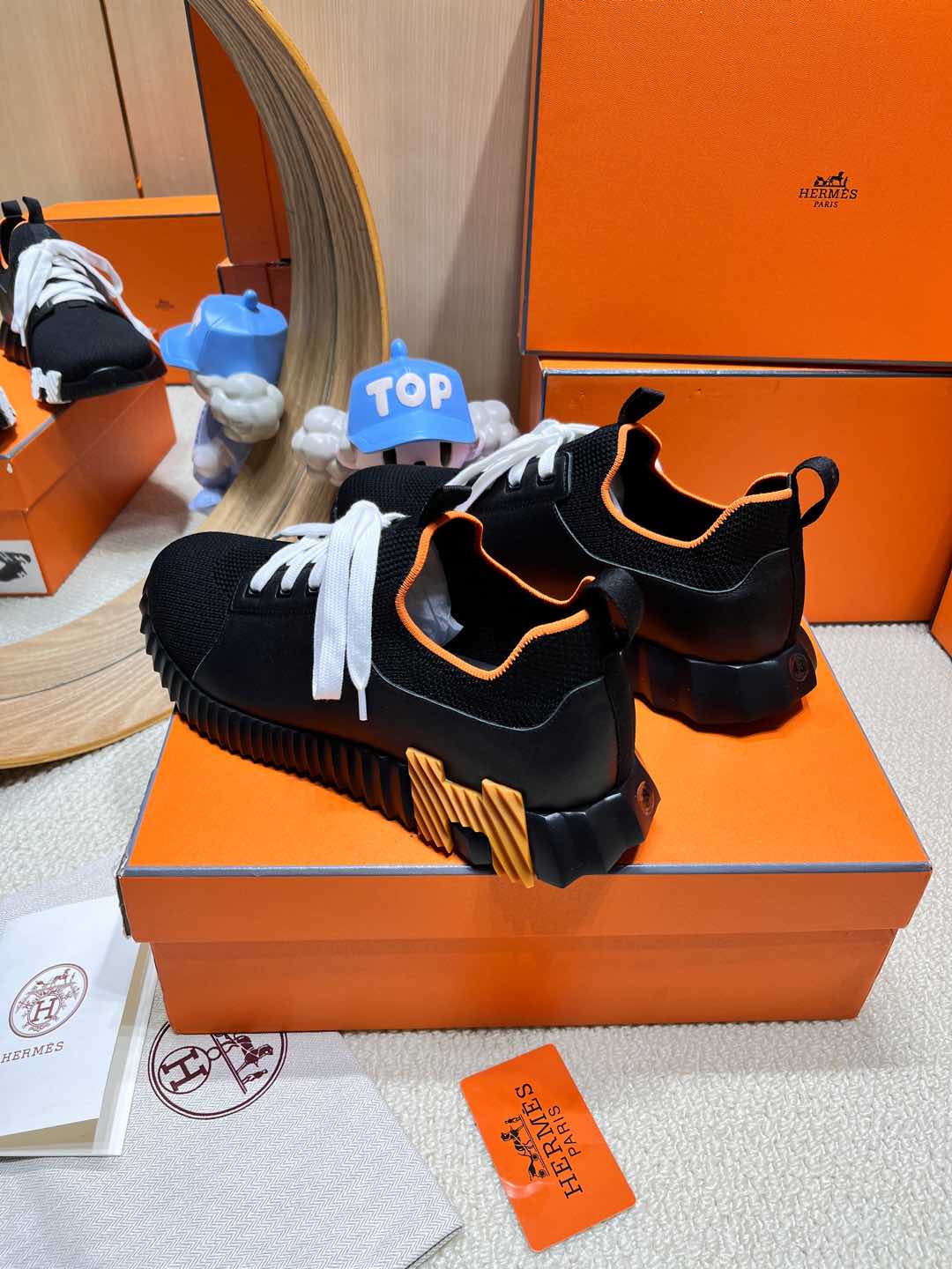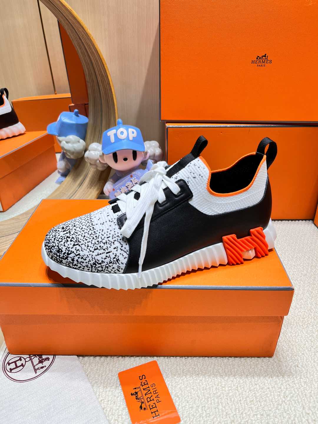 HM Depart slip-on Sneaker White Logo Black Knitted fabric and Calfskin 206335