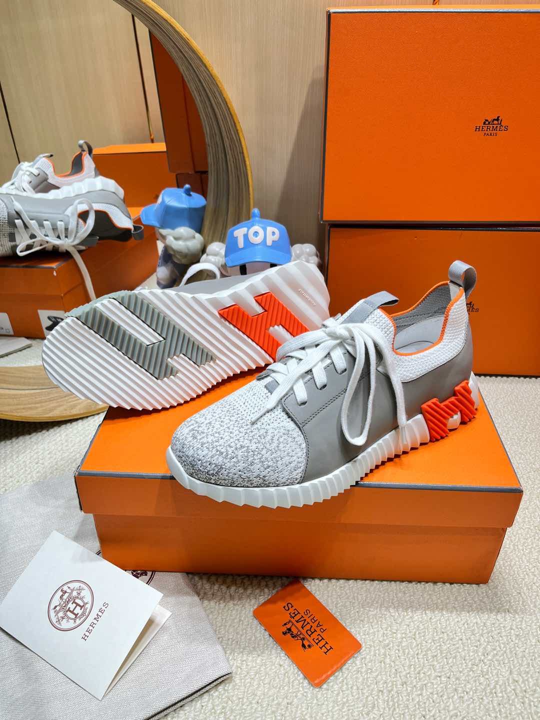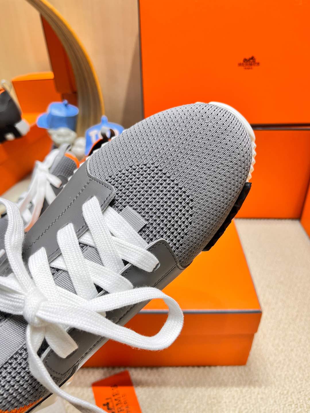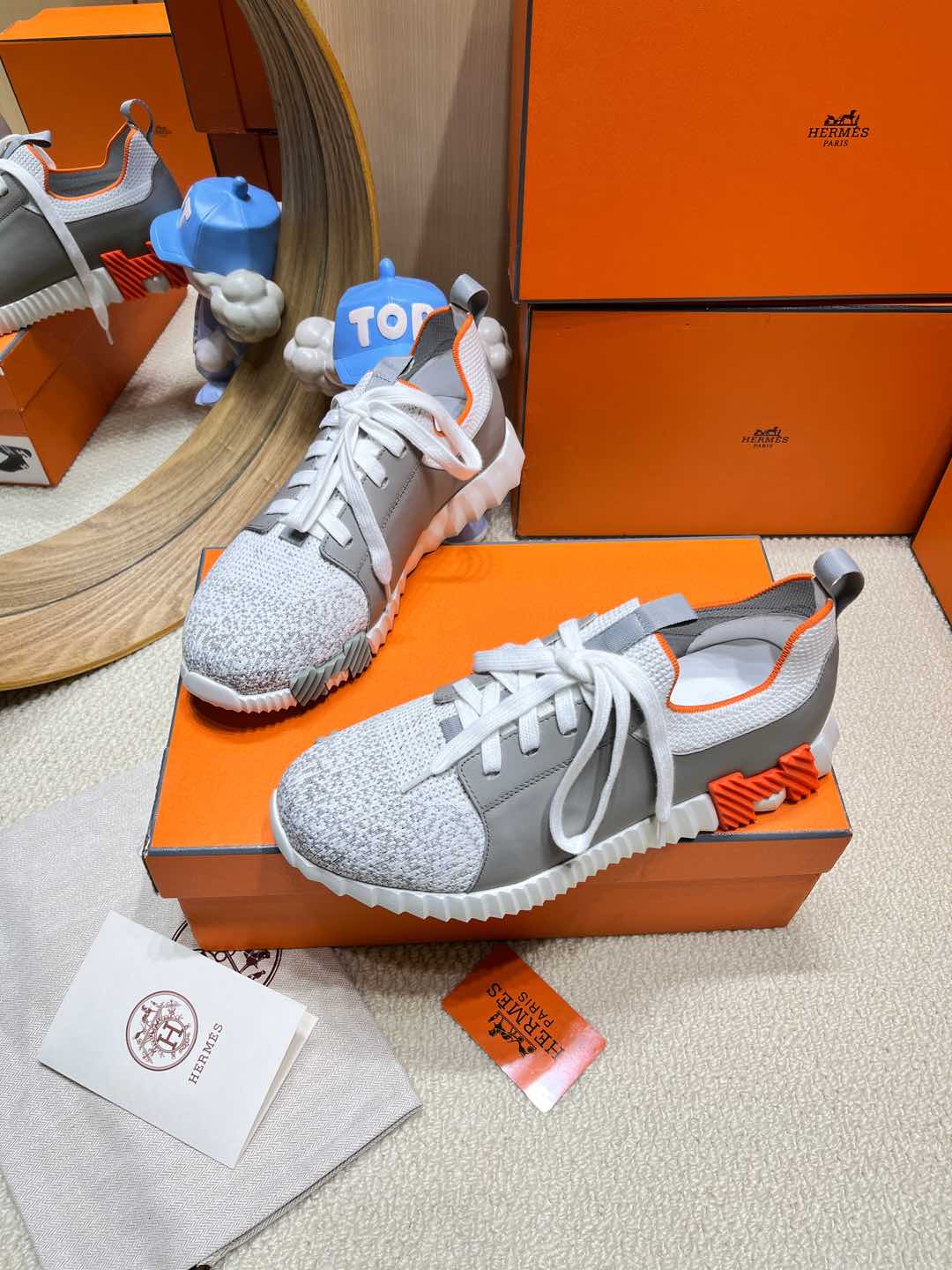 HM Depart slip-on Sneaker White mix Grey Knitted fabric and Calfskin 206334