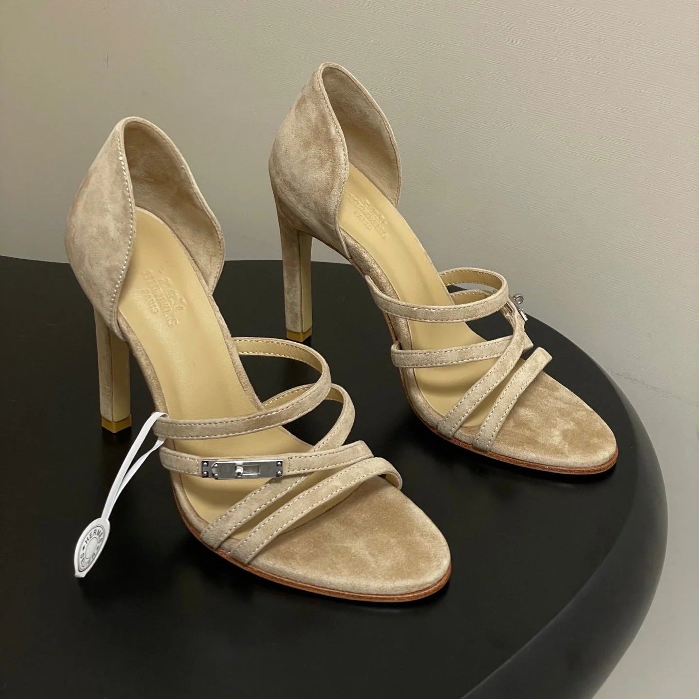 HM 25S HIGH-HEEL SANDAL 105 MM IN BEIGE SUEDE