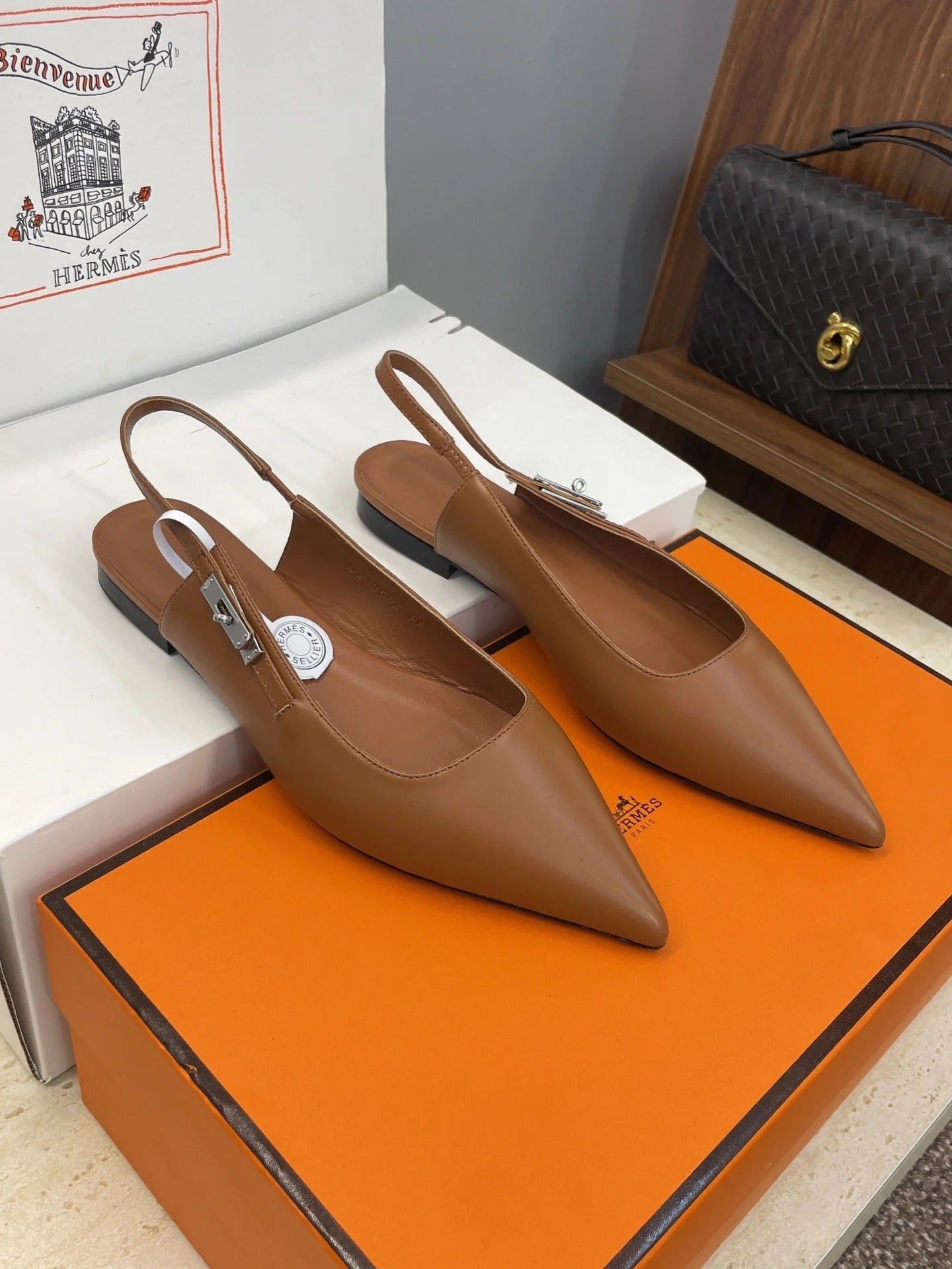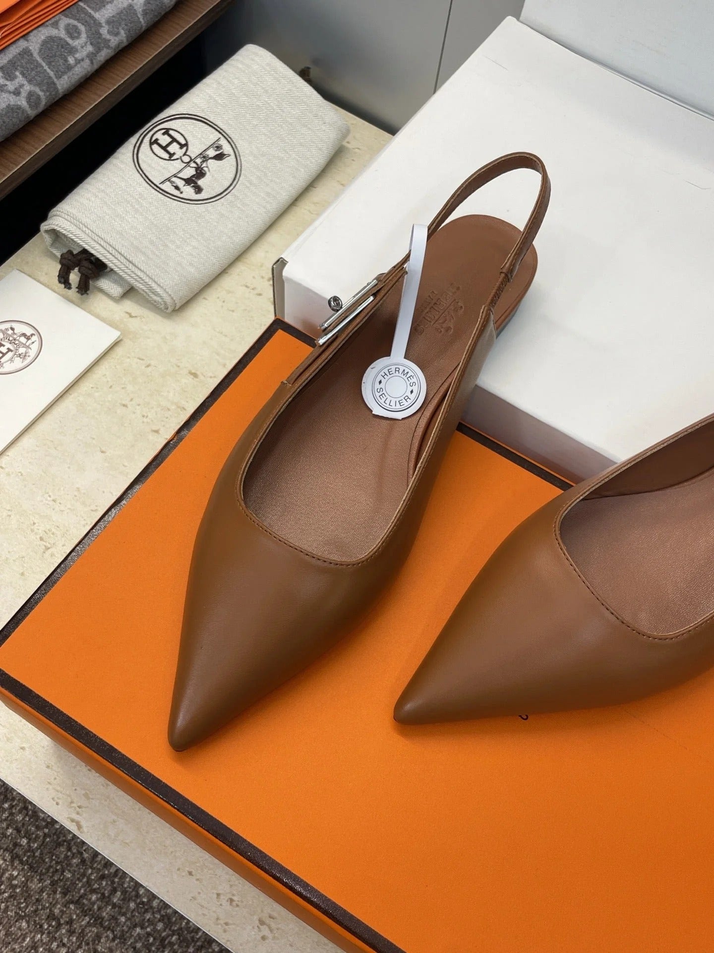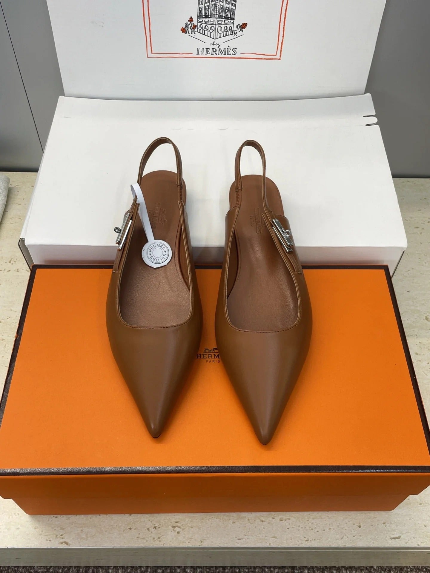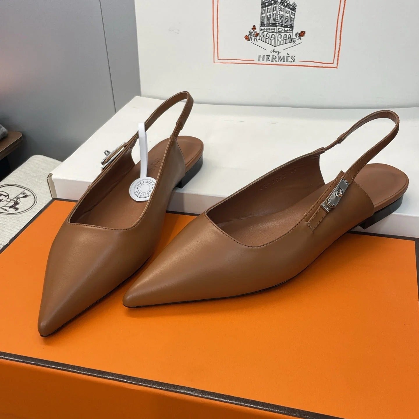 HM 26ss Slingback Flat Brown Calfskin 607275