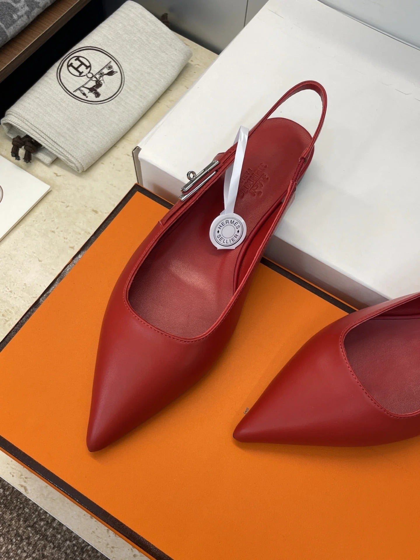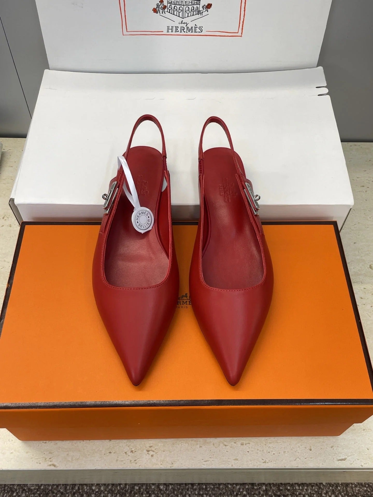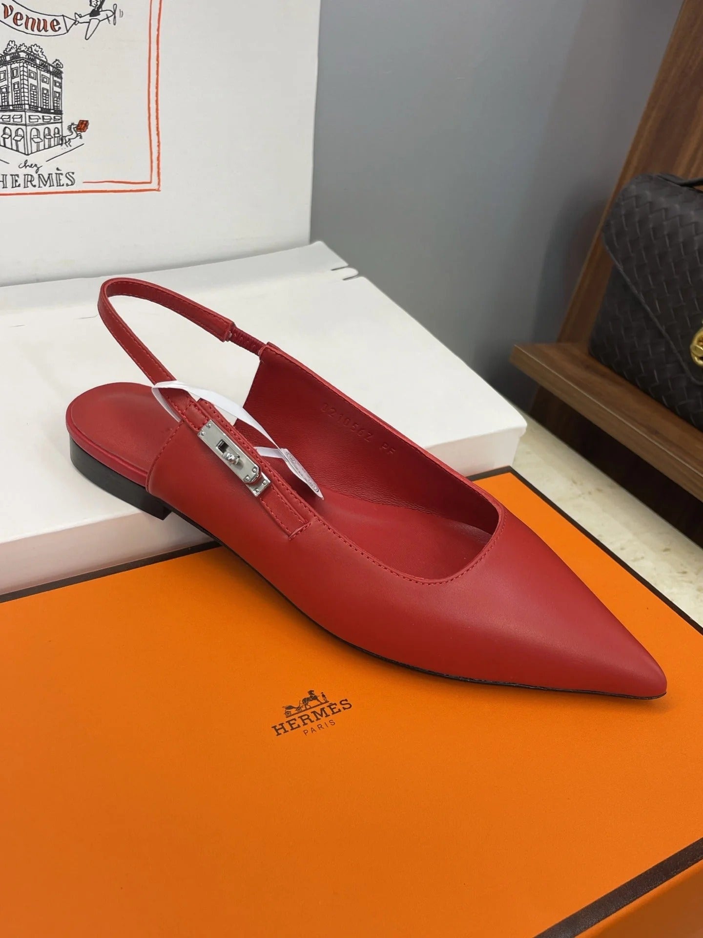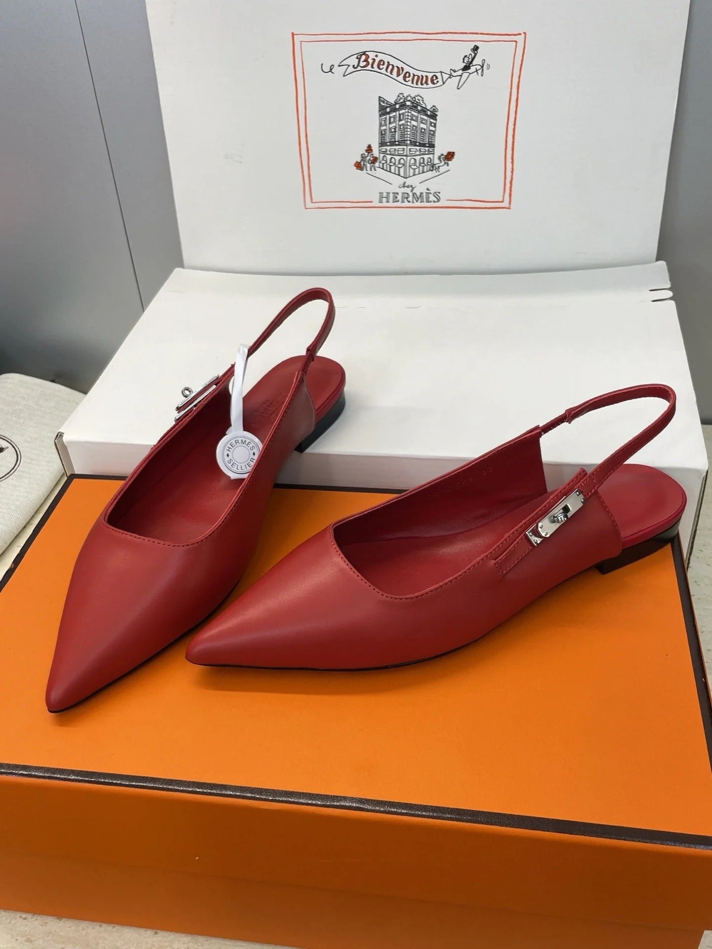HM 26ss Slingback Flat Red Calfskin 607274