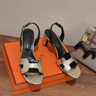 SLINGBACK SANDAL ETERNITE 75 BLACK MIX SILVER LAMBSKIN