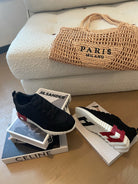 HM Bouncing 35 Sneakers Black Canvas & Suede Goatskin H Burgundy Black
