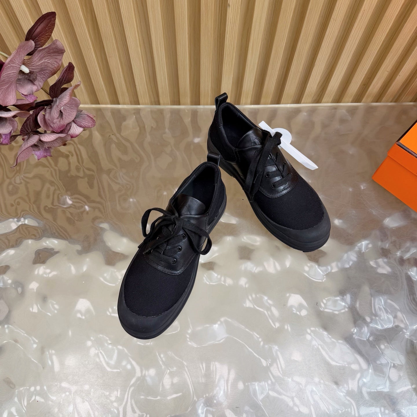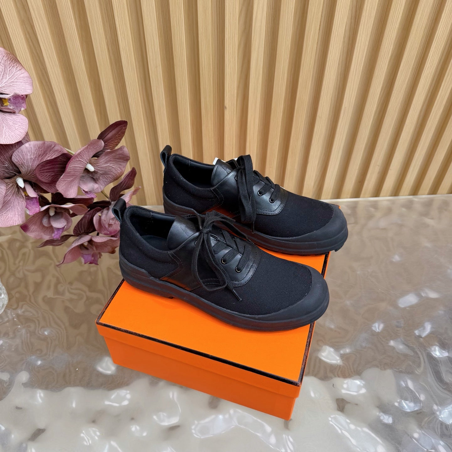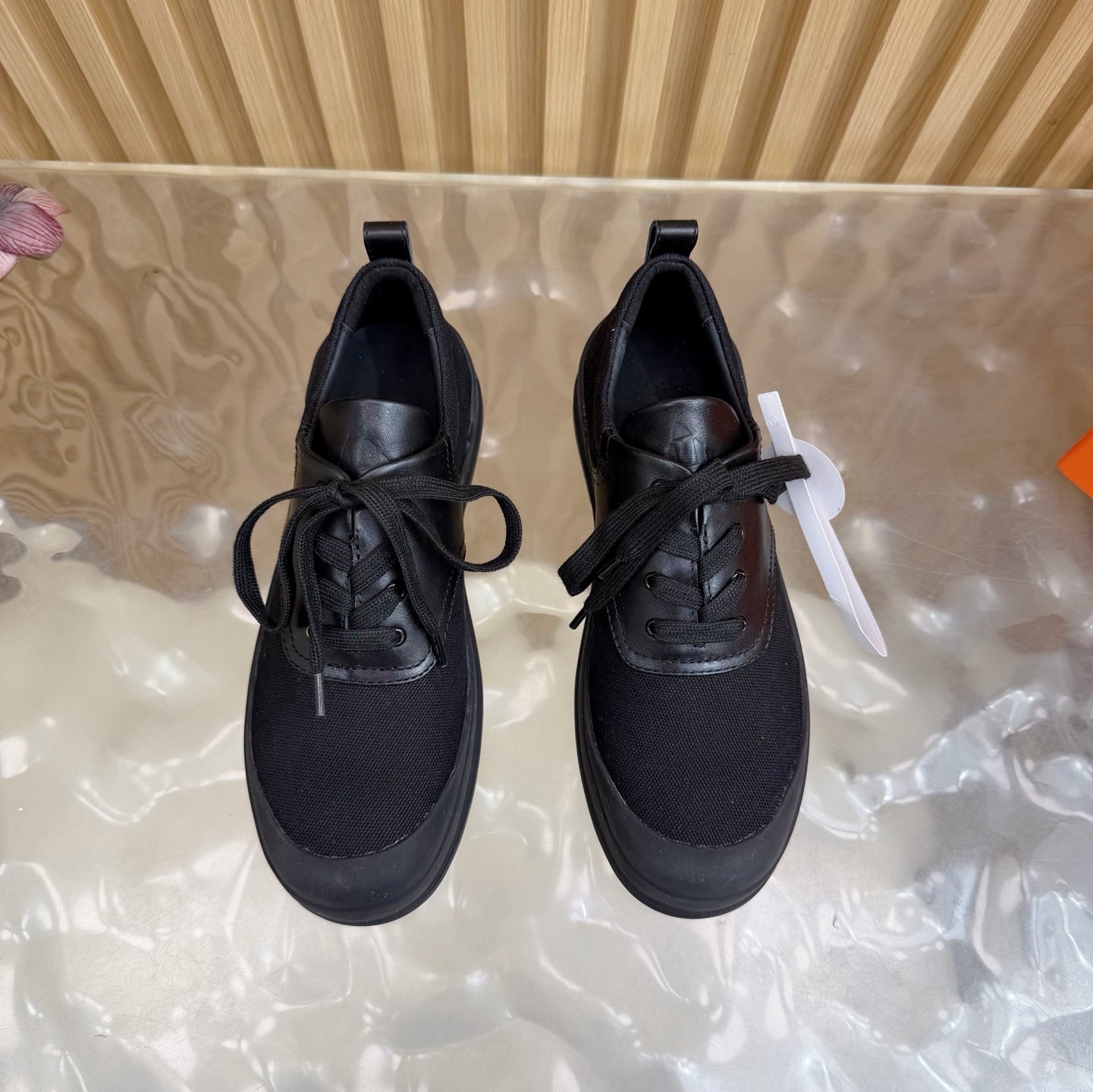 HM Kool Oxford Shoes Black Sheepskin Canvas 589182
