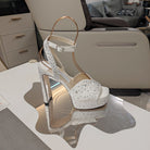 Jimmy 25 Platform Sandal Heels White Silk Satin 240013