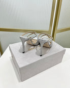 Jimmy Anise 85 In Silver Cowhide With Glitter Mules 587698