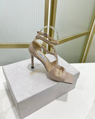 Jimmy Azia 95 In Light Beige Pink Glossy Cowhide Sandals 587703