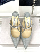 Jimmy Bing 65mm In Grey Black Stone Studded Cowhide Mules 593196