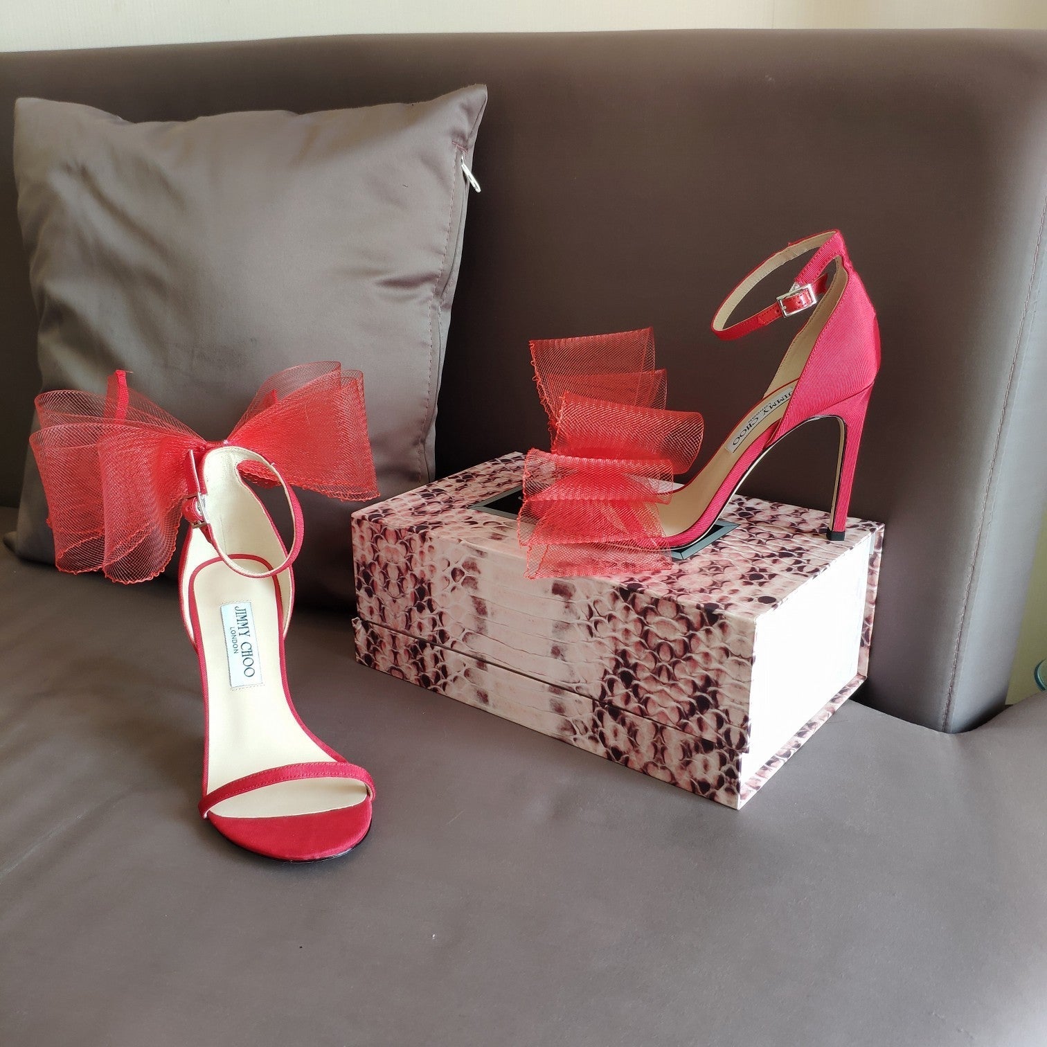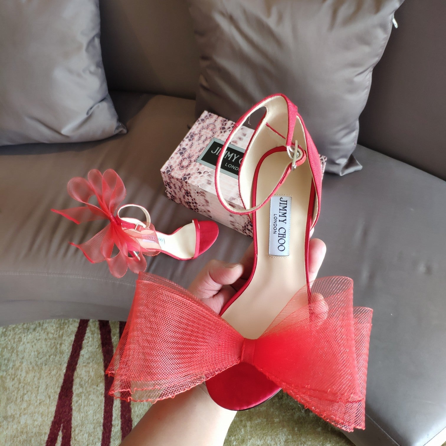 Jimmy Choo 100mm Bow Sandal Red Mesh Cowhide