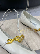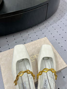 Jimmy Diamond Tilda Flat 10mm In White Nappa Leather Flats With Chain 591609