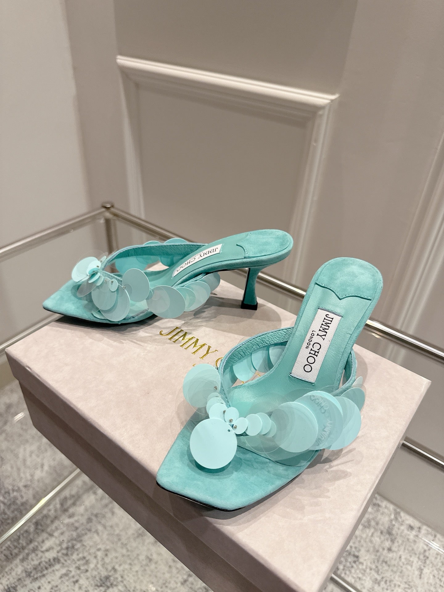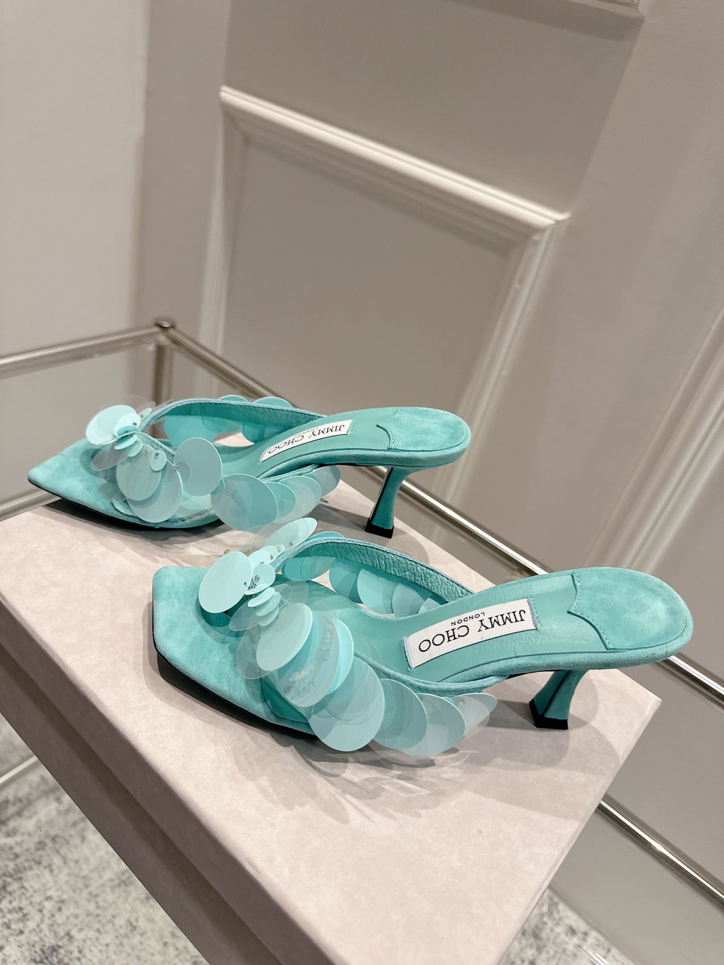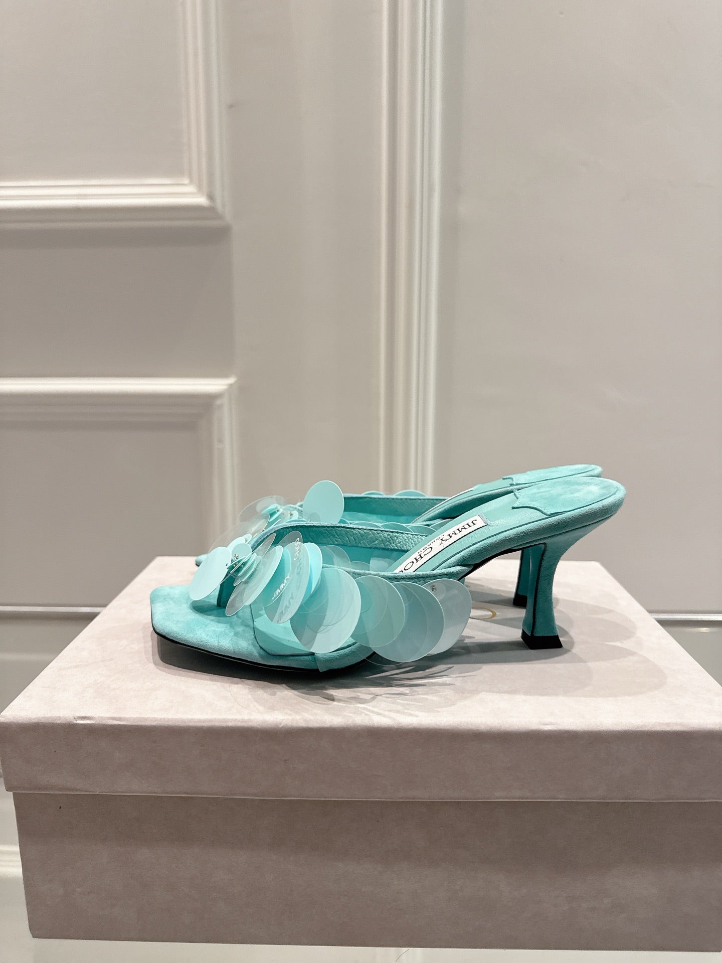 Jimmy Freia Mule 70mm Aqua Green Suede 422449