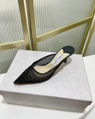 Jimmy Mule 65mm In Black Mesh Fabric With Swarovski Crystal 597875