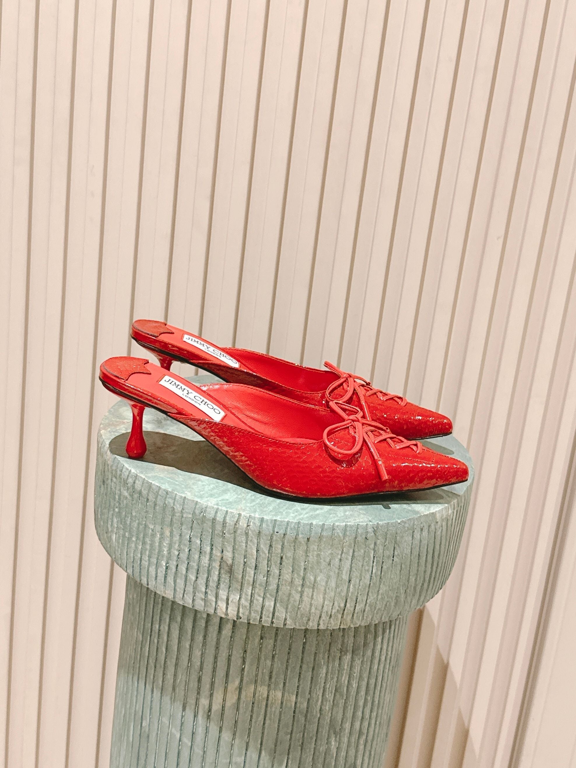 Jimmy Snake Embossed Scarlett Mule 50mm Bright Red Cowhide 431845