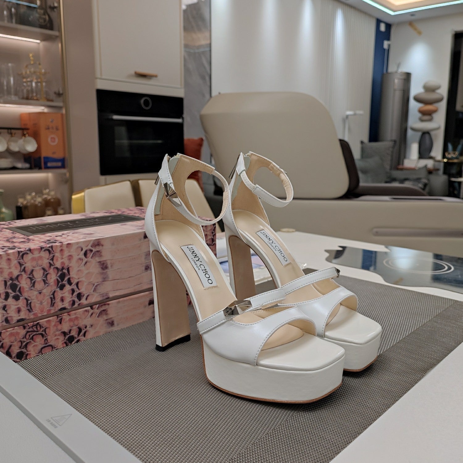 Jimmy 25 Sandal Heels White Cowhide 240087
