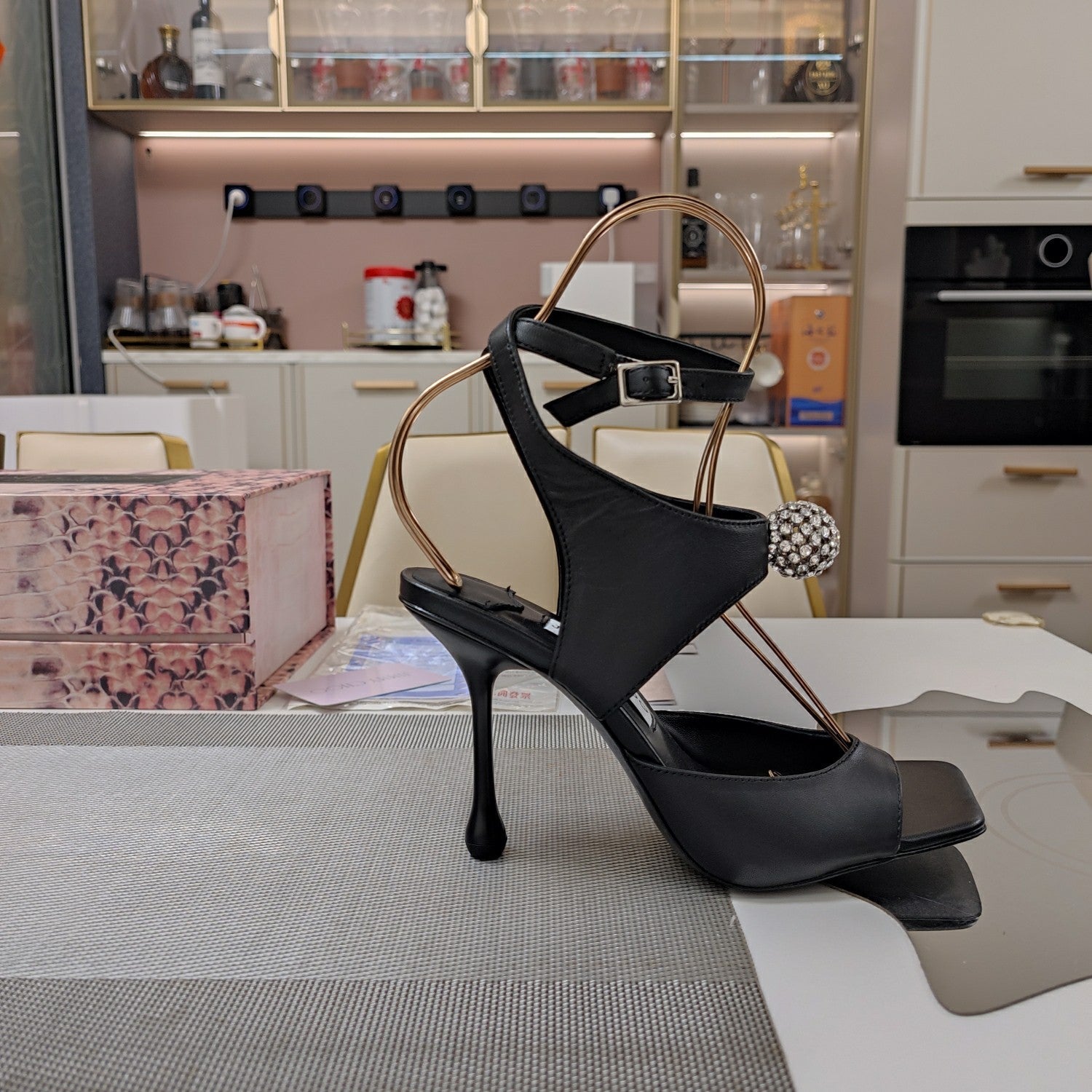 Jimmy 25 Sandal Heels Black Cowhide 240086