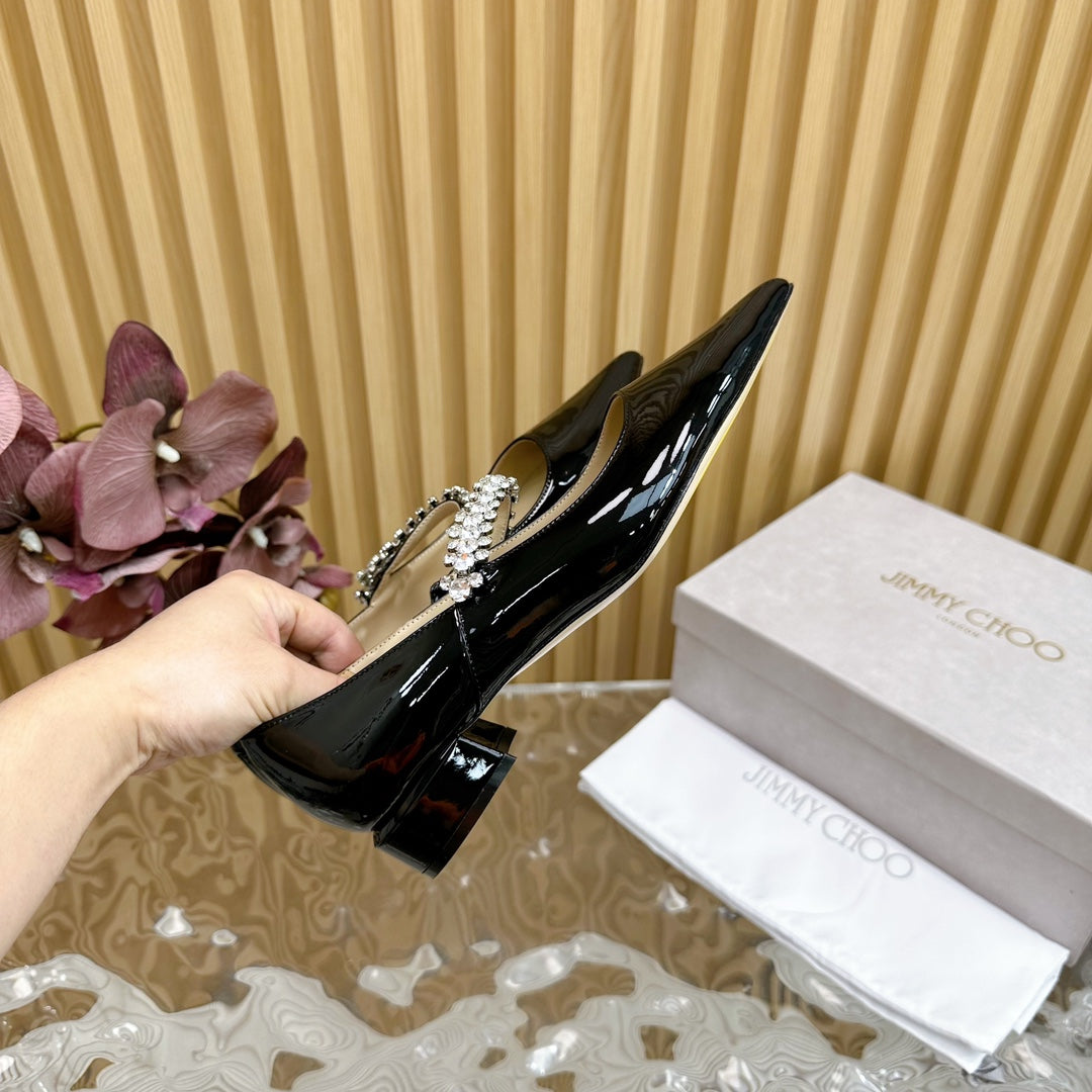 Jimmy Crystal-Strap Ballerina Shoes In Black Glossy Cowhide 641044