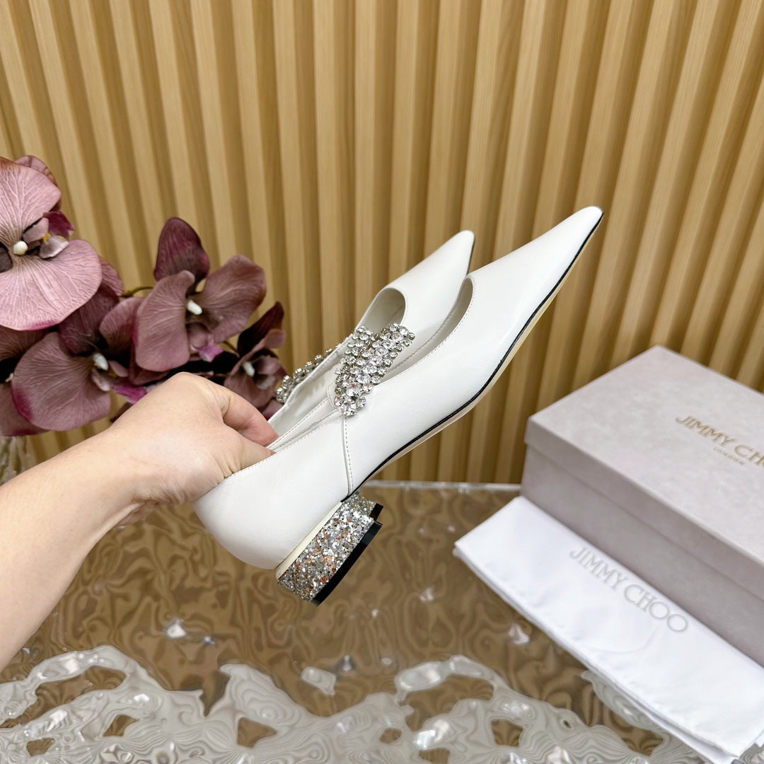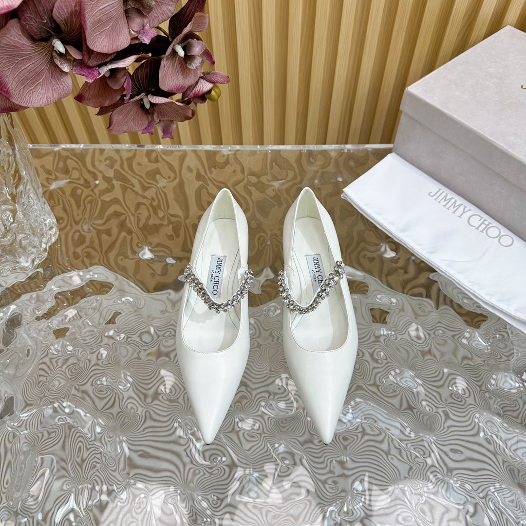 Jimmy Crystal-Strap Ballerina Shoes In White Cowhide 641048