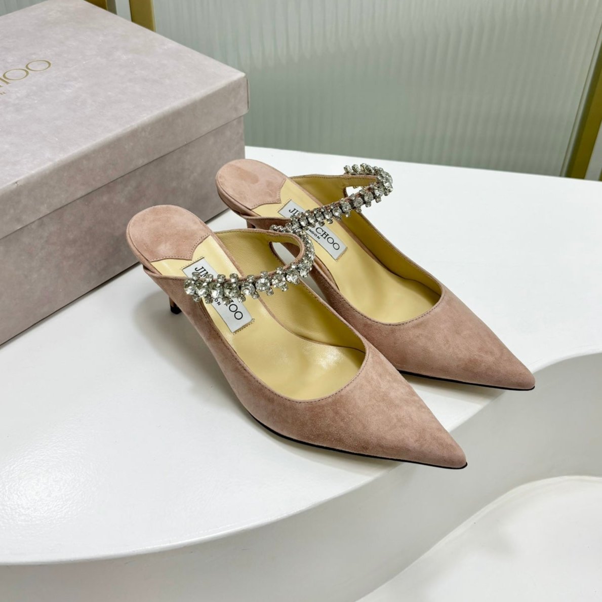 Jimmy Bing 65mm In Pastel Pink Suede Mules 587766