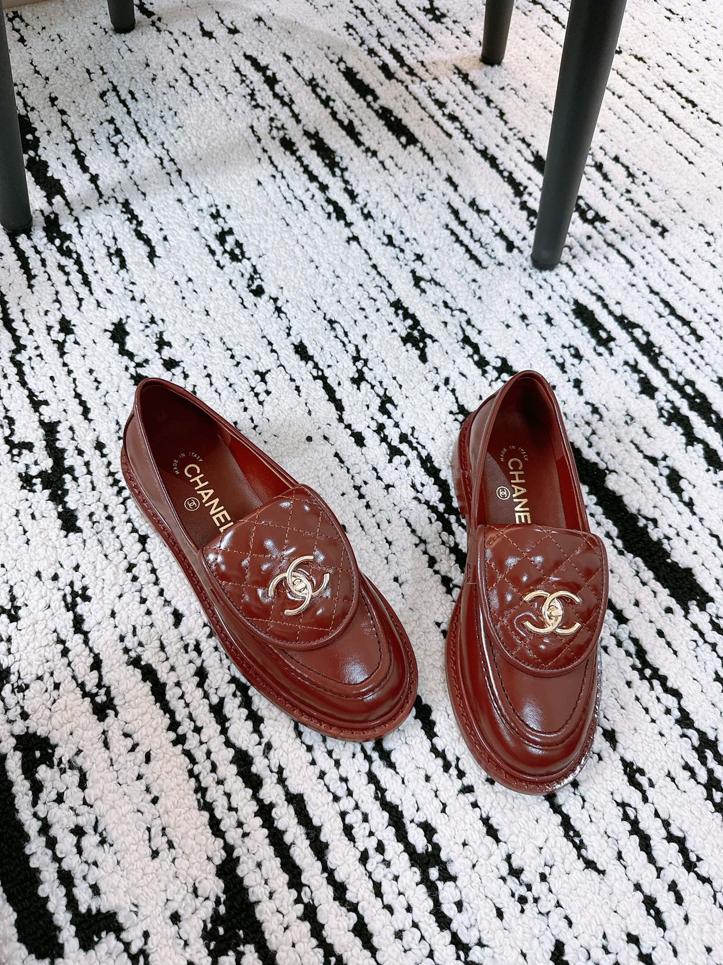 CC Moccasins 25mm In Brown Red Glossy Lambskin 144645