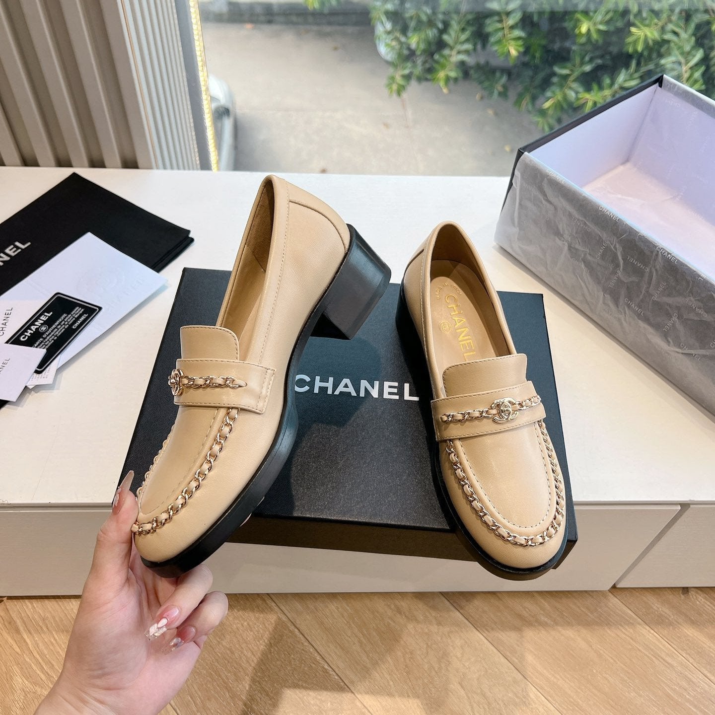 CC Moccasins Beige Chain Lambskin