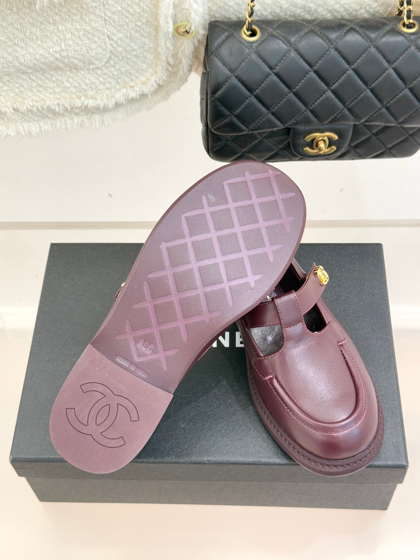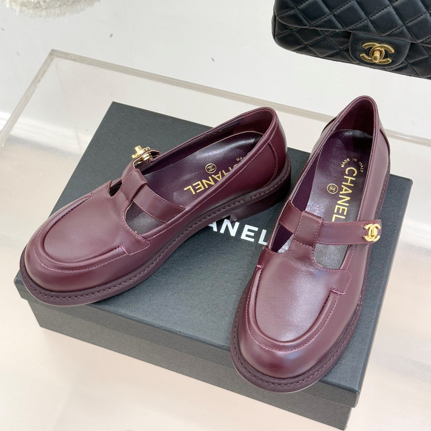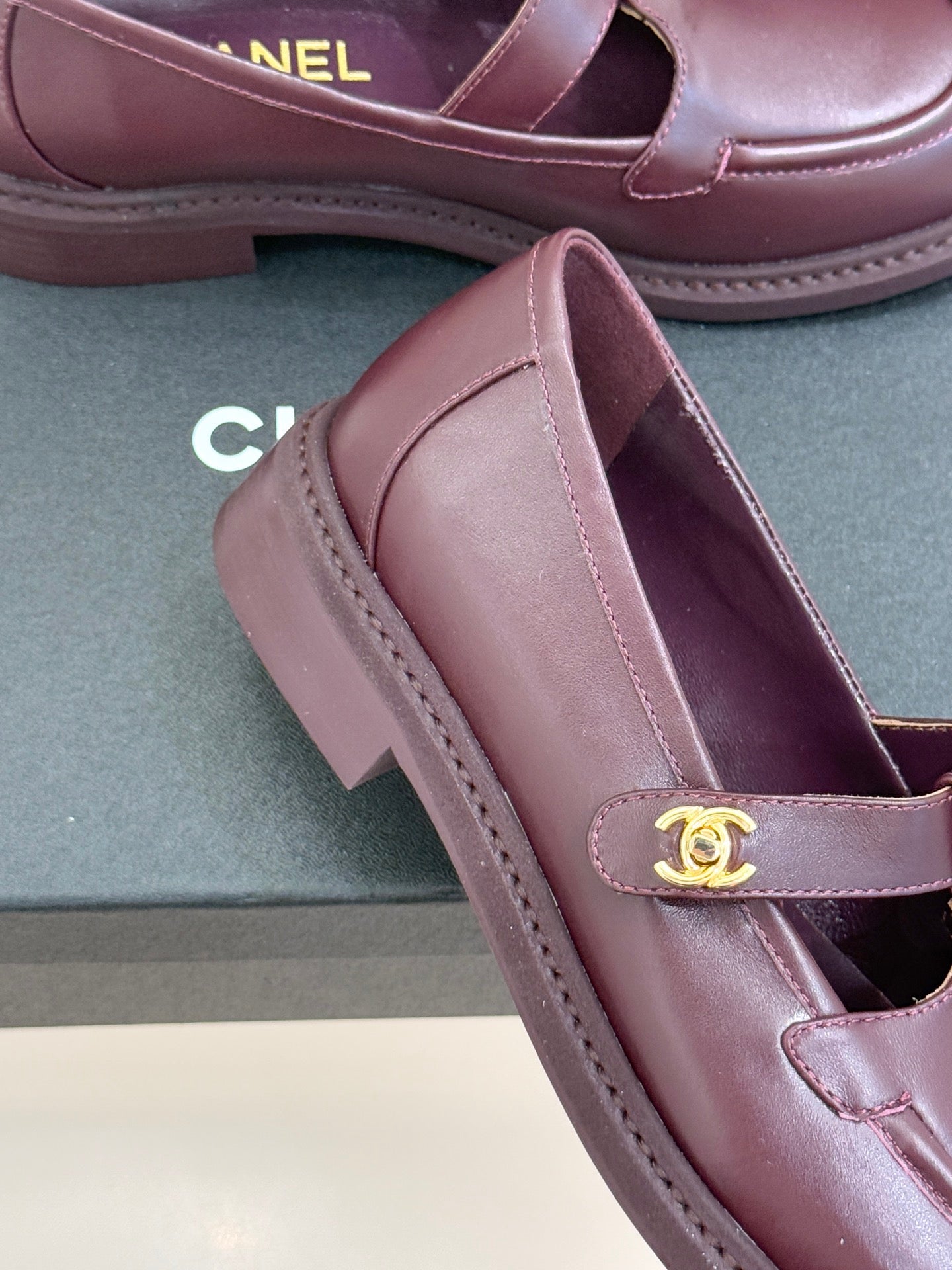 CCMary Jane Loafers CC Logo Buckle Burgundy Cowhide 512059
