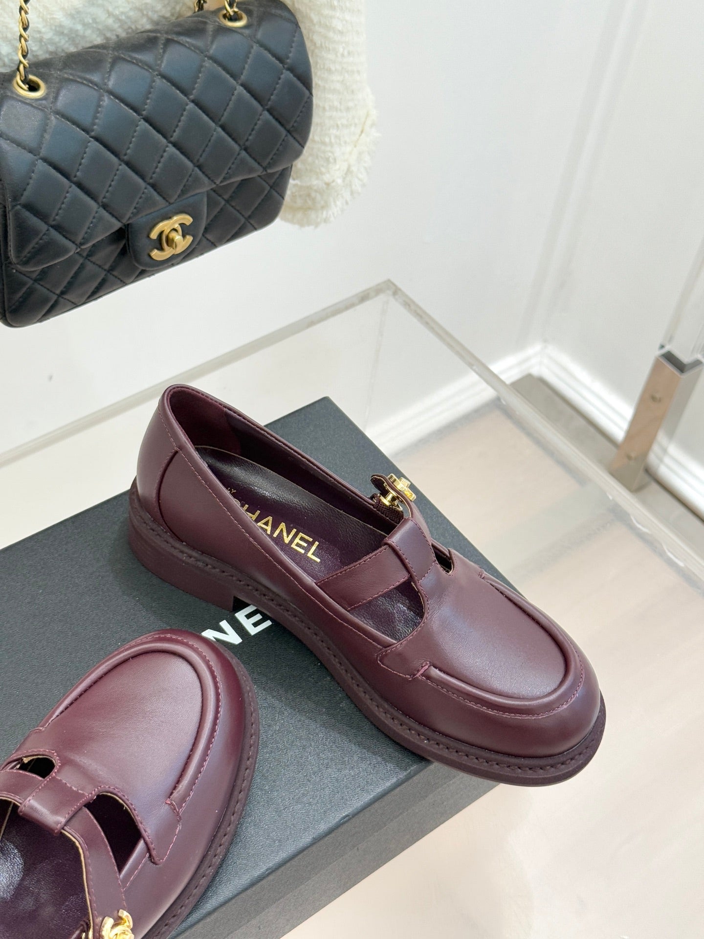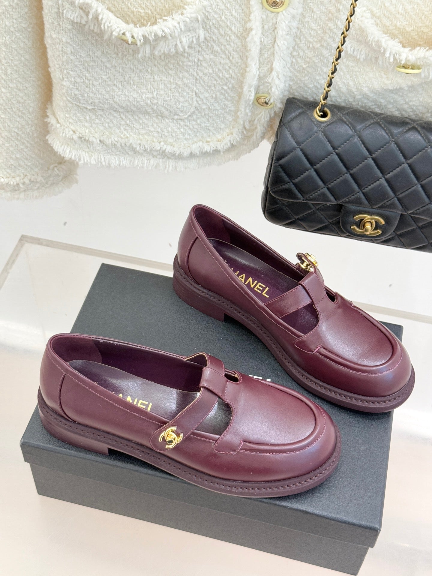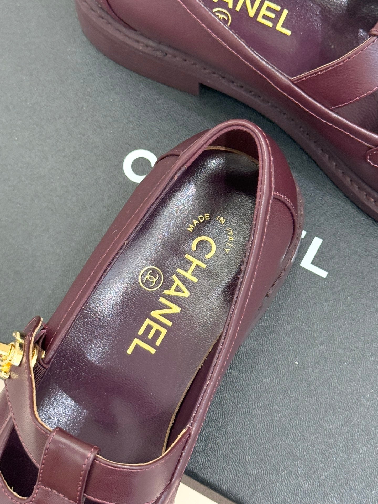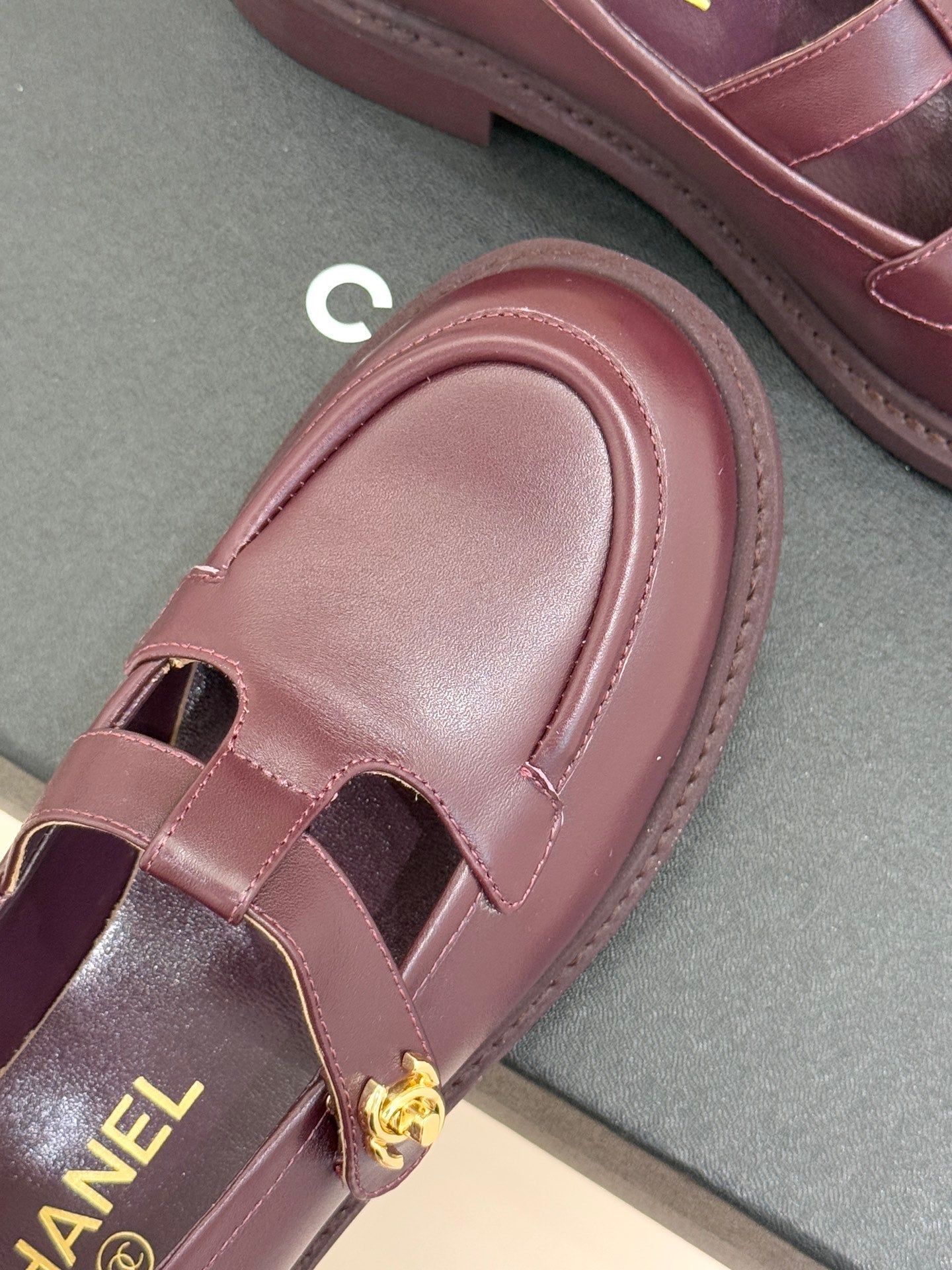 CCMary Jane Loafers CC Logo Buckle Burgundy Cowhide 512059