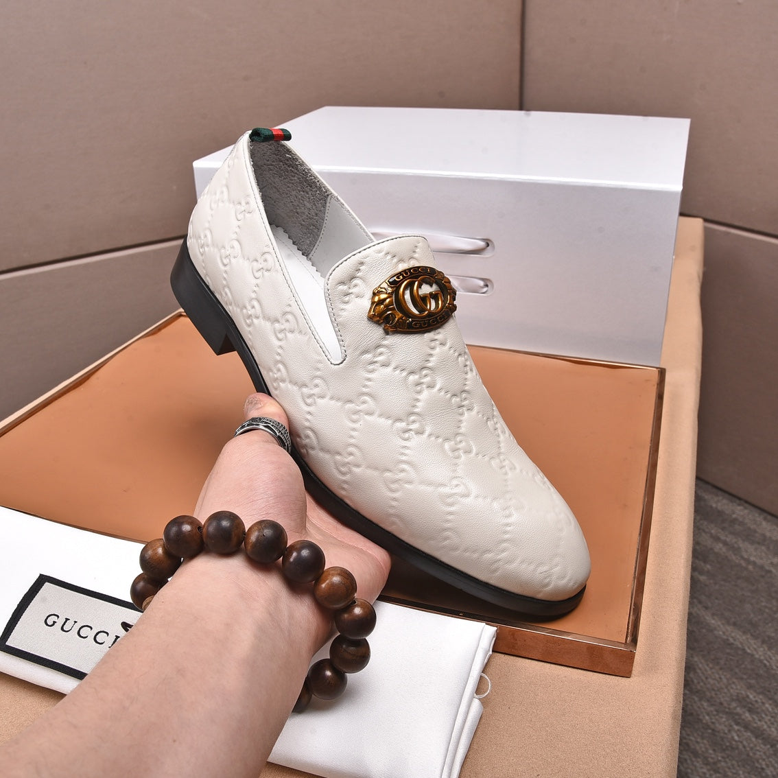 GG Men's Slip on Loafer White Embossed Cowhide 533952